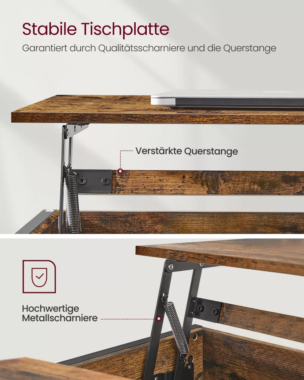A megerősített X-alakú merevítőkkel ellátott szerkezet stabilitást biztosít, míg a minőségi fémzsanérok garantálják a felnyitható lap sima működését. A vízálló felület könnyen tisztítható, így a mindennapi használat során is megőrzi szépségét.