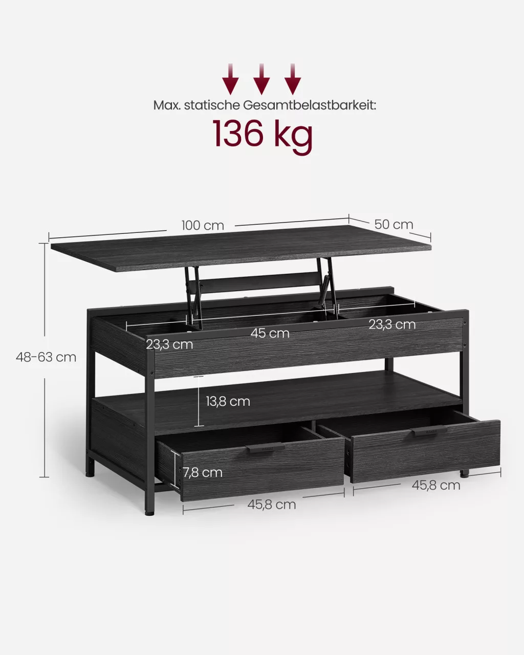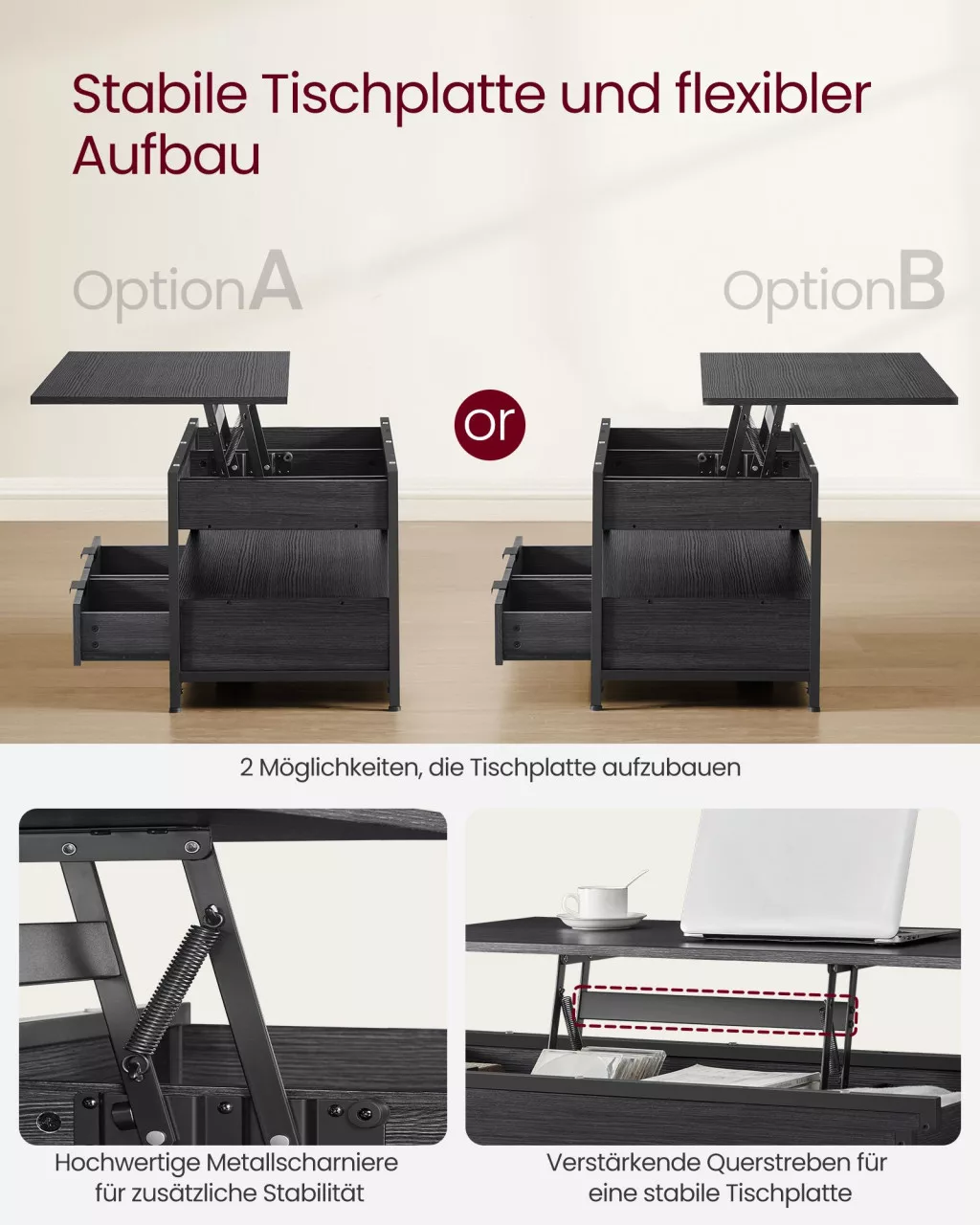 VASAGLE Felnyitható Dohányzóasztal Tárolóval Antracit-Fekete