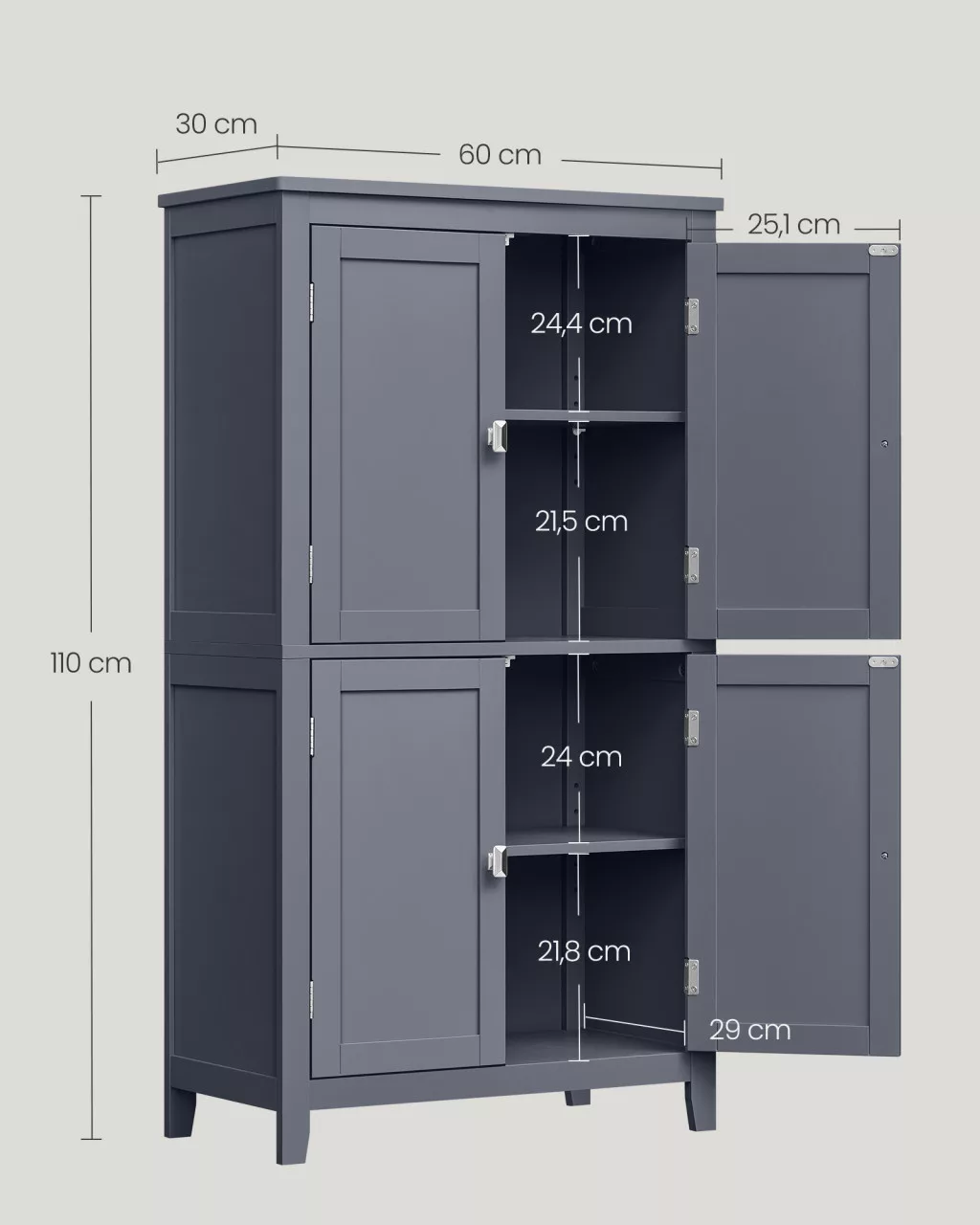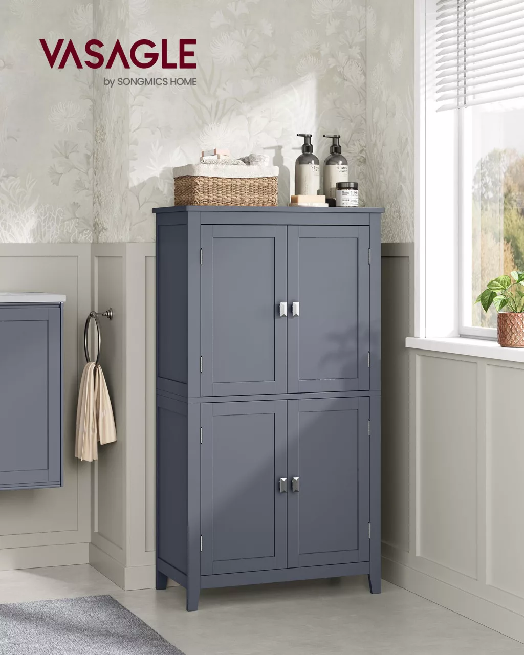 VASAGLE Fürdőszobai Állószekrény MDF Palaszürke 4-Ajtós