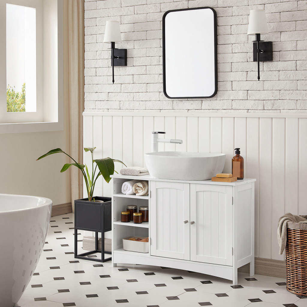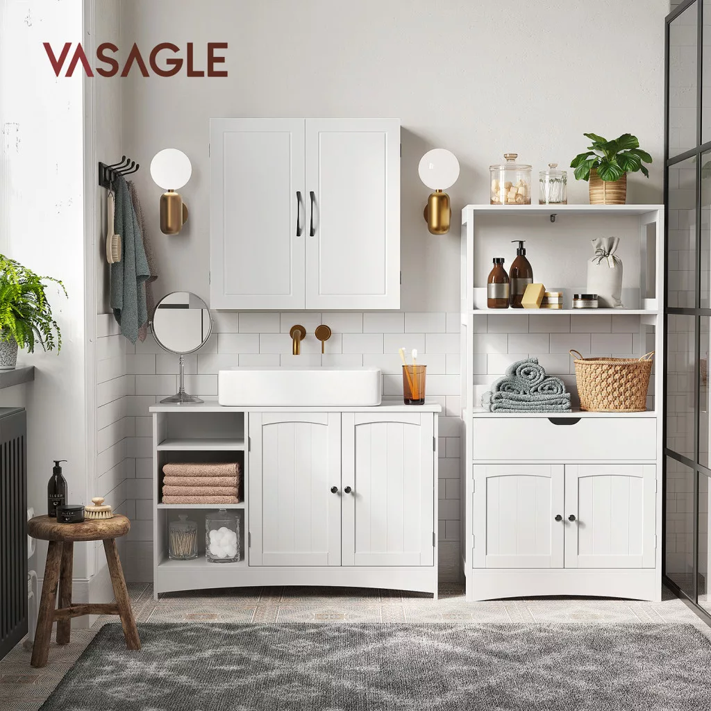 VASAGLE Fürdőszobai Mosdószekrény Fehér MDF Állítható Polcokkal
