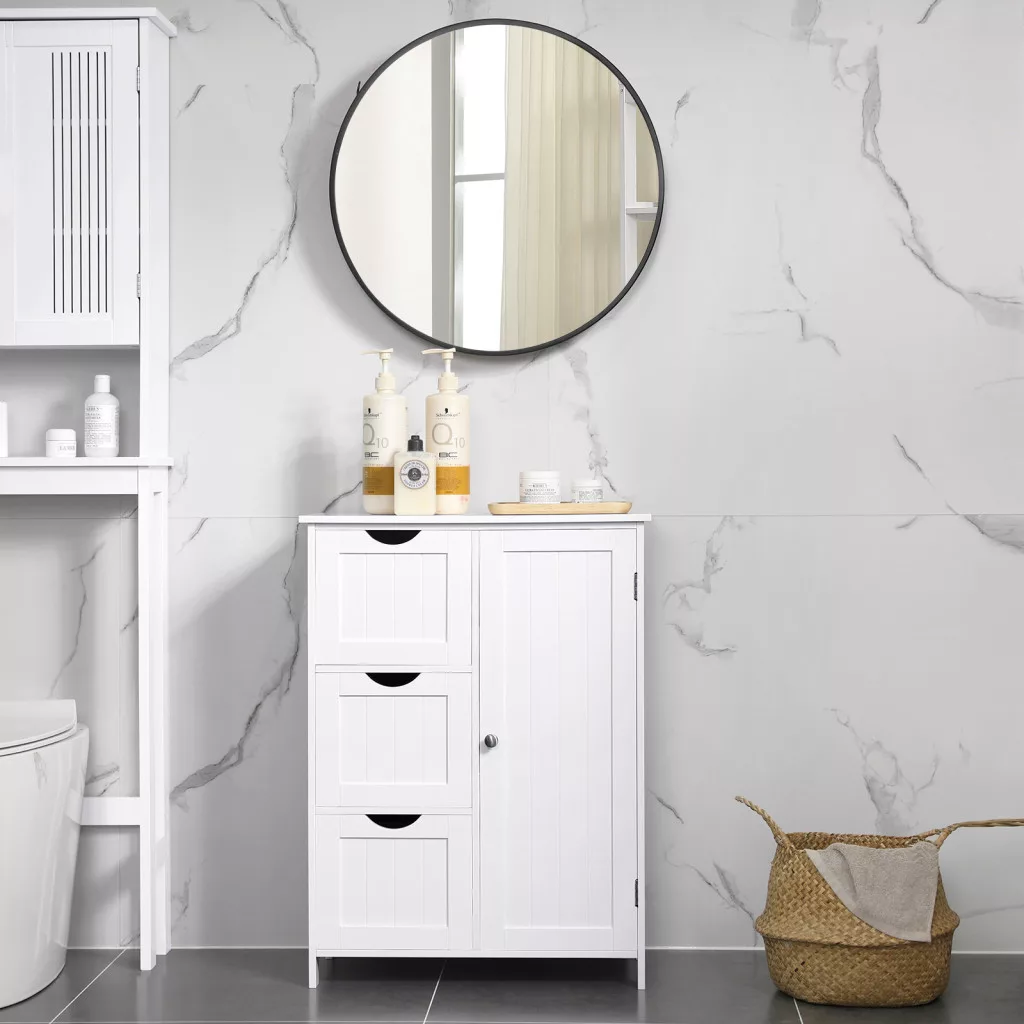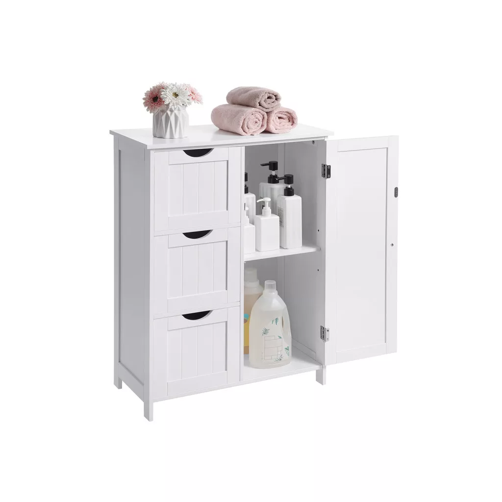 VASAGLE Fürdőszobai Tárolószekrény Fehér MDF 3 Fiókos
