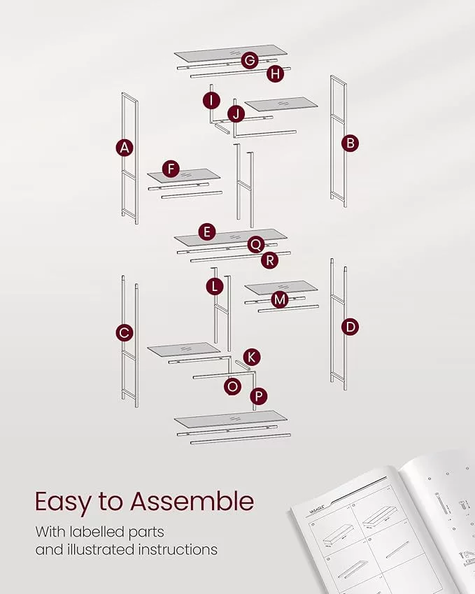 A polcrendszer kiválóan alkalmas könyvek, dekorációs tárgyak, növények vagy akár konyhai eszközök tárolására. A stabil szerkezet és az állítható lábak garantálják a biztonságos használatot bármilyen helyiségben.