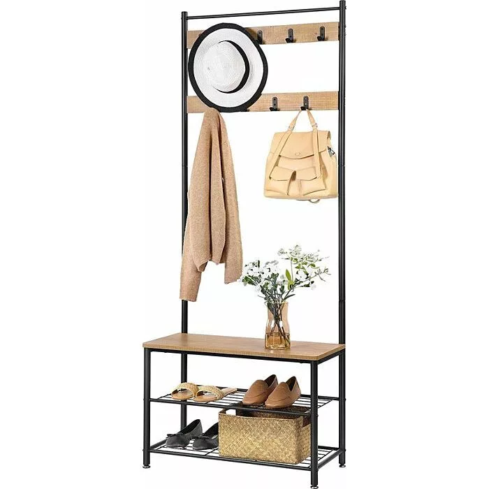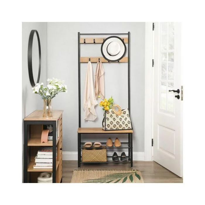 VASAGLE HSR041N01 Multifunkciós Előszobai Állófogas Cipőspolccal Fekete-Barna