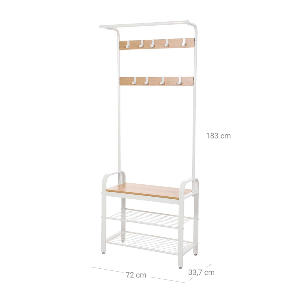 VASAGLE HSR40W Előszoba Fogas Cipőtároló Paddal Tölgy és Krém 4-az-1-ben Multifunkcionális