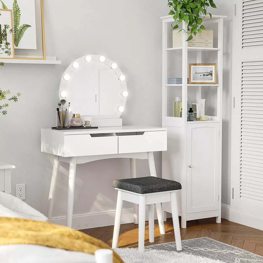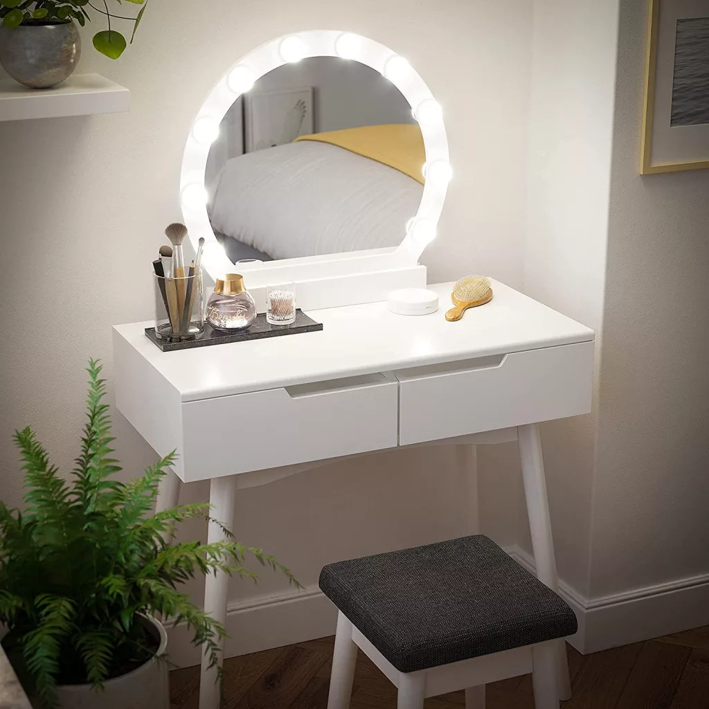 VASAGLE Hollywood Fésülködőasztal LED Világítással Fehér