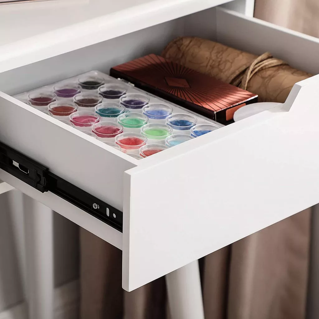 • Tárolási megoldások: Két tágas fiók és széles asztallap