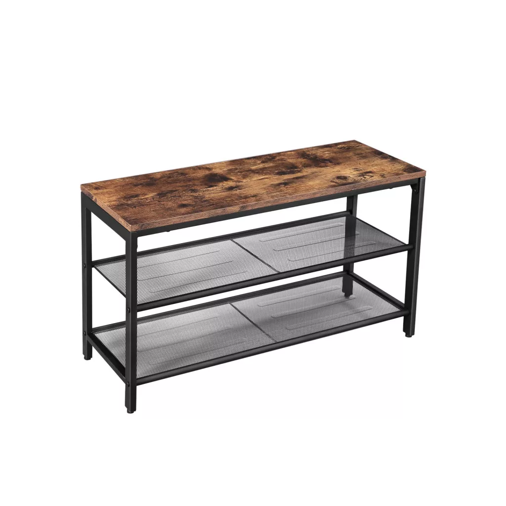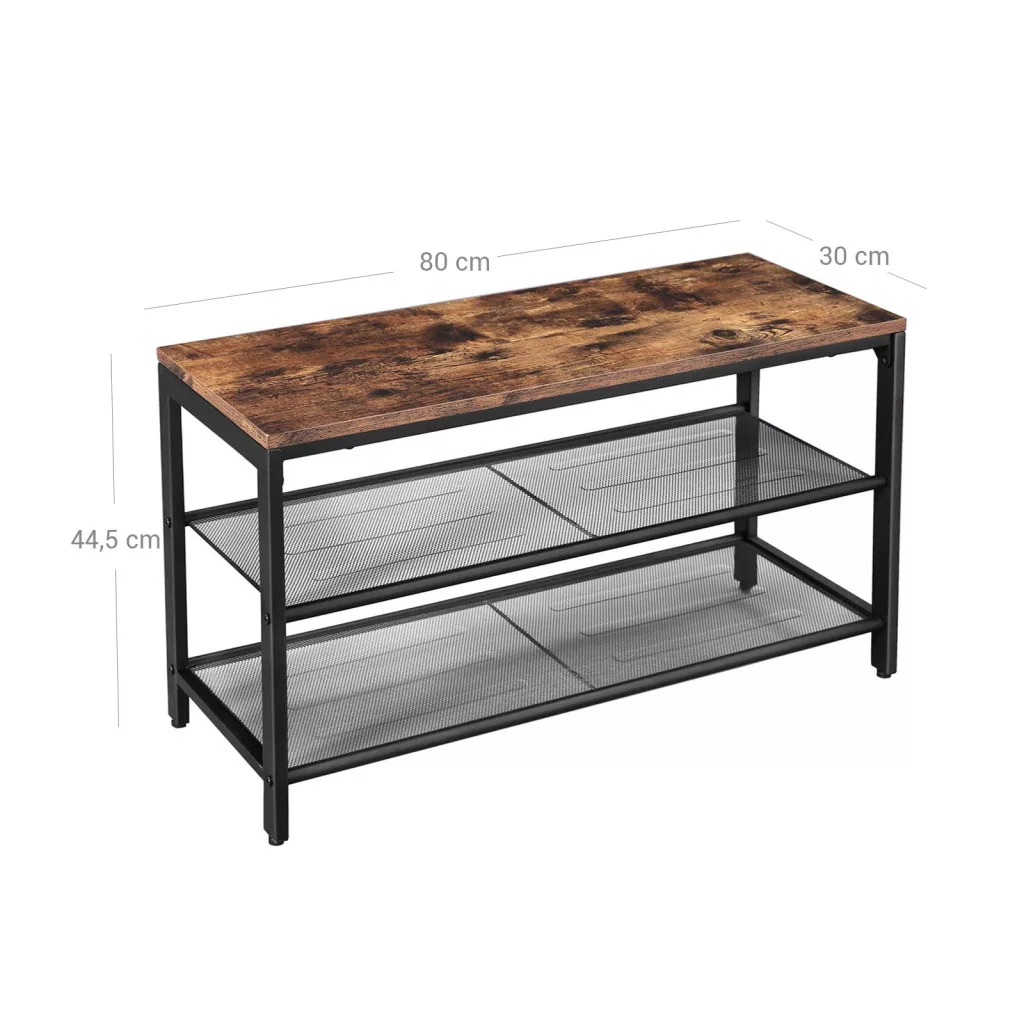 Ez a VASAGLE cipőspad ötvözi a praktikumot és a stílust az ipari dizájn jegyében. A rusztikus barna ülőfelület és a fekete fém váz tökéletes összhangot alkot, míg a két hálós polc bőséges helyet biztosít a cipők rendezett tárolásához.
