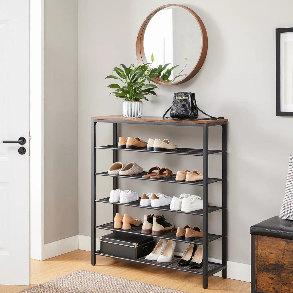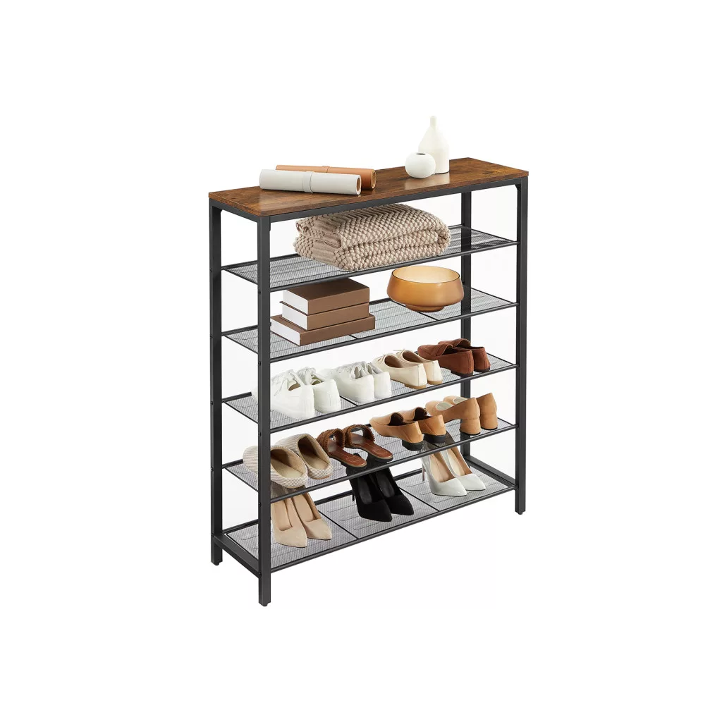 VASAGLE INDESTIC Ipari Stílusú Cipőállvány 5 Szintes Vintage Barna-Fekete