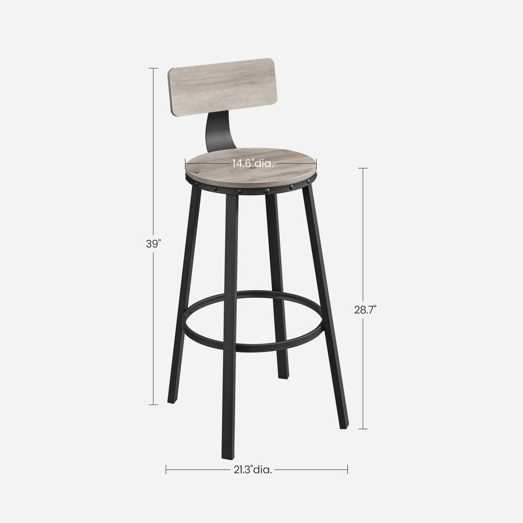 VASAGLE Industrial Bárszék Szett Fém Vázzal Szürke-Fekete
