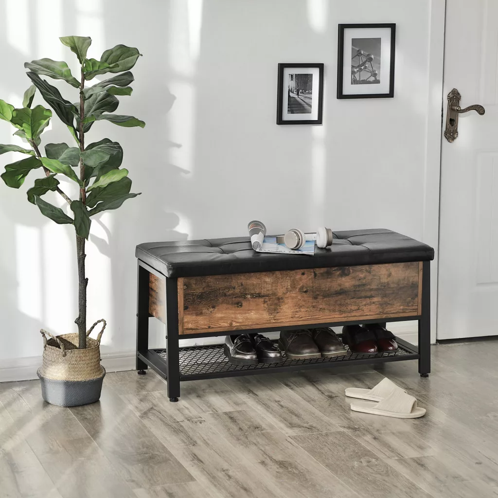 VASAGLE Industrial Chesterfield Cipőtároló Pad Műbőr Ülőfelülettel