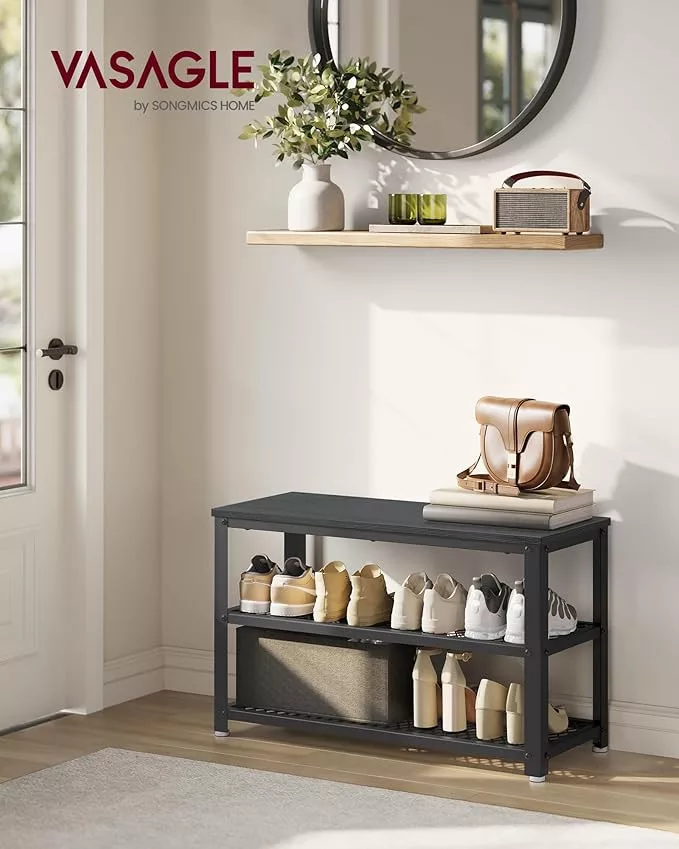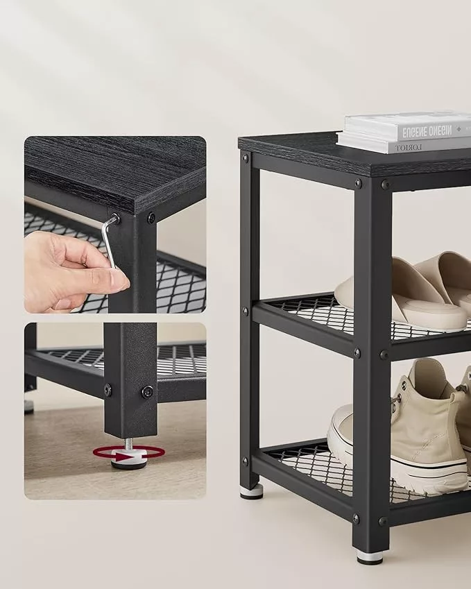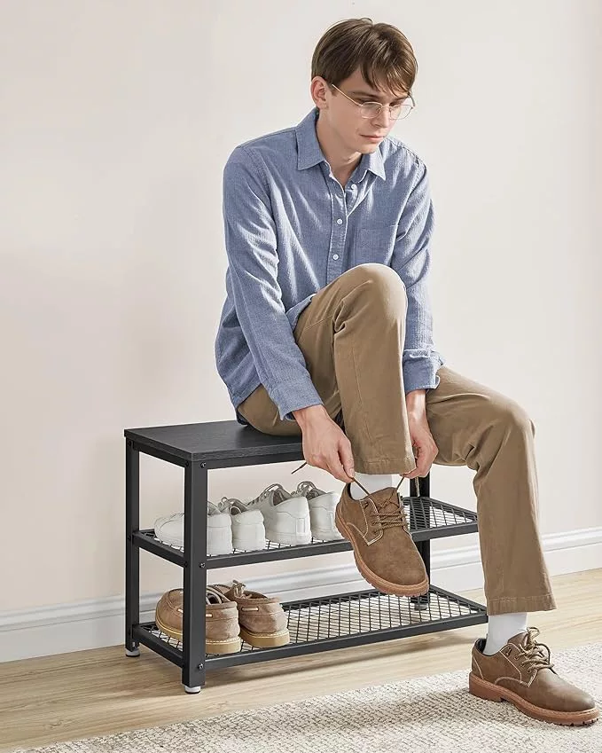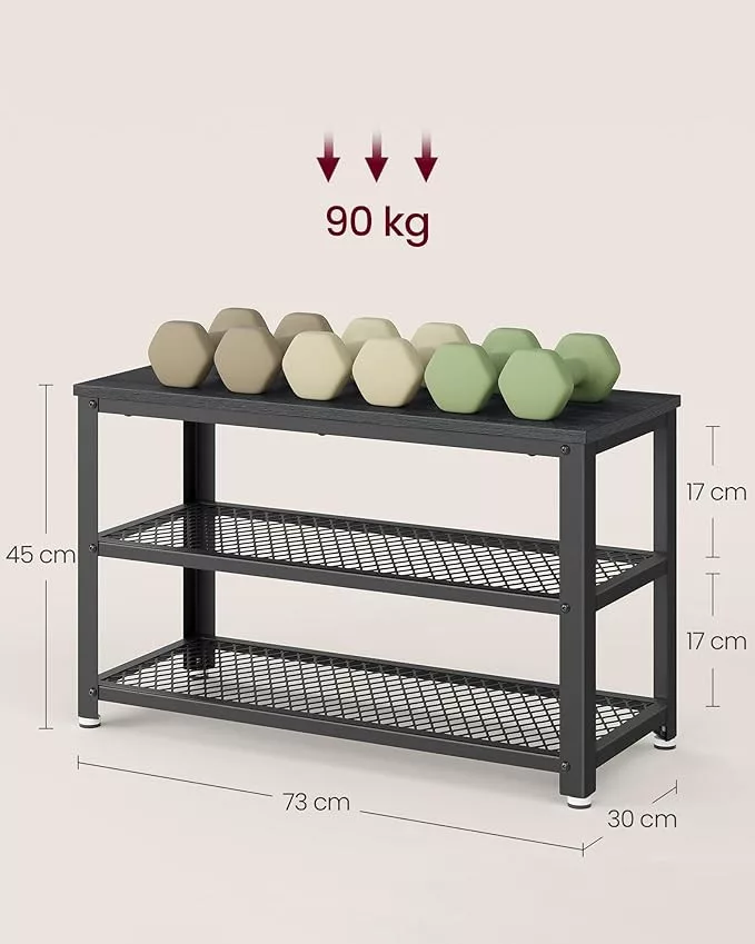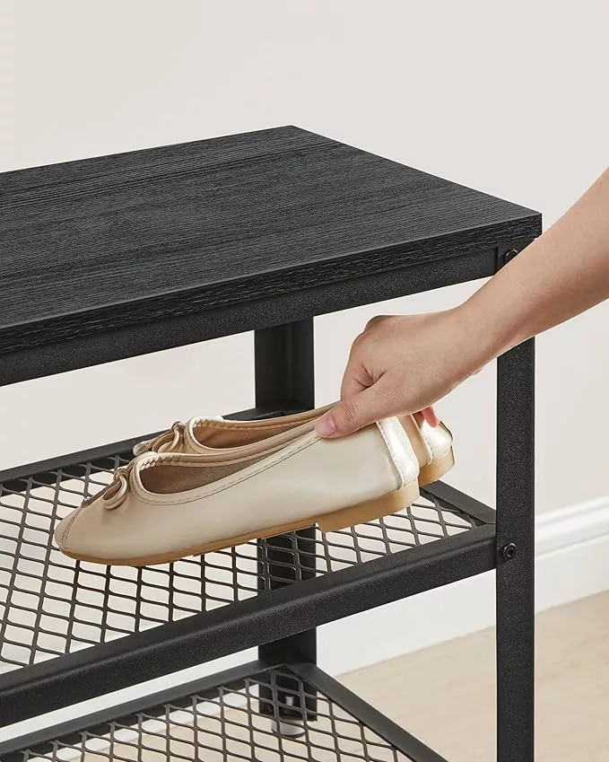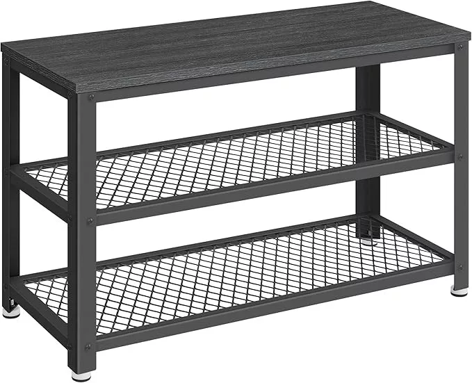VASAGLE Industrial Cipőspad Fém Hálós Polcokkal Ébenfa Fekete