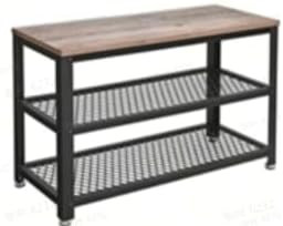 VASAGLE Industrial Cipőtároló Pad 2 Polcos Fém-Fa Greige-Fekete