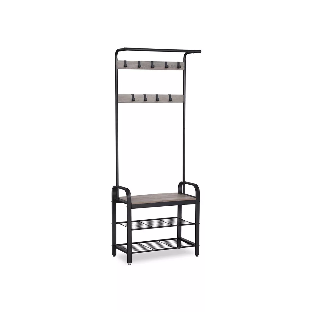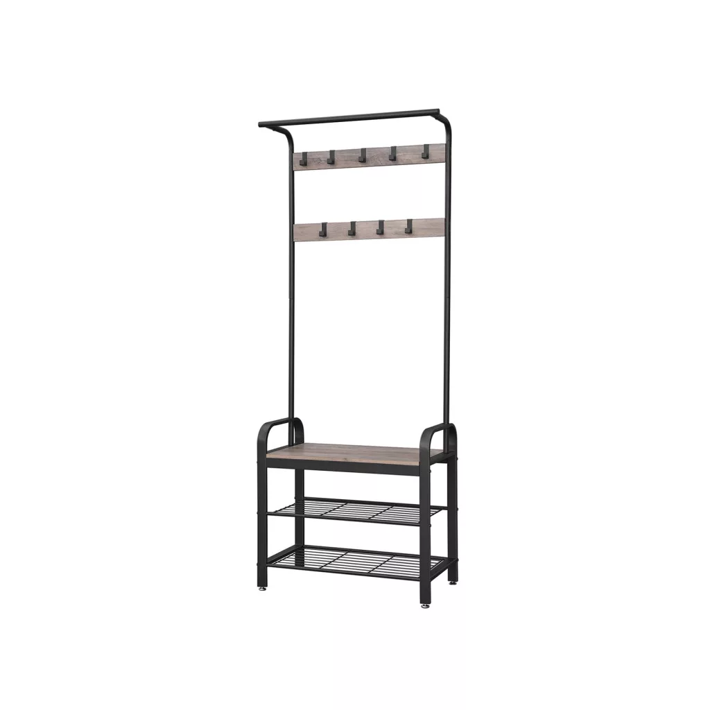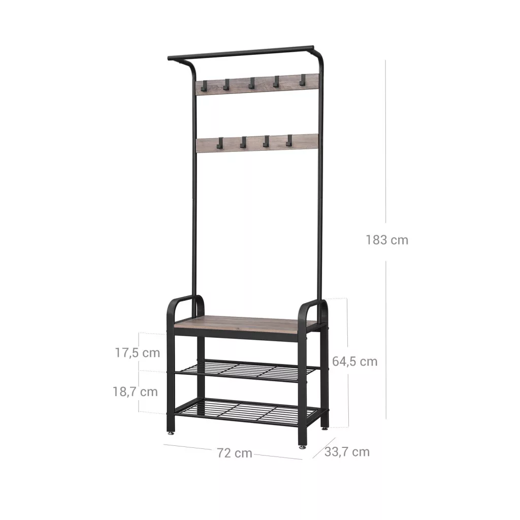 VASAGLE Industrial Előszoba Állvány 4-az-1-ben Cipőspolccal és Paddal Greige-Fekete