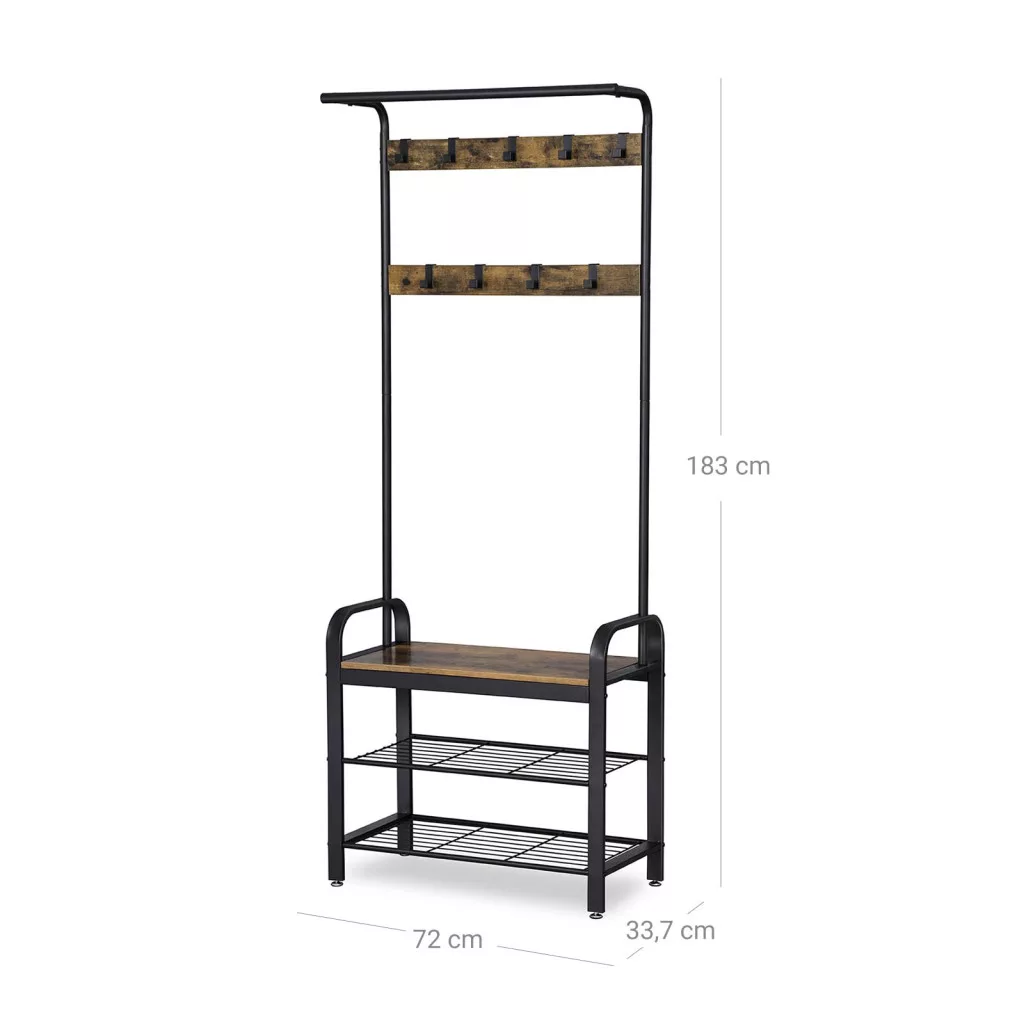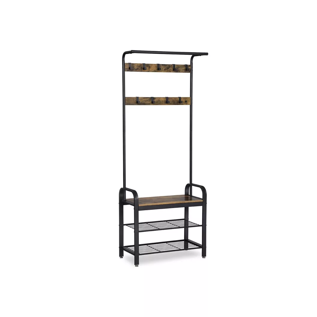 VASAGLE Industrial Előszobai Állófogas Cipőtárolóval Rusztikus Barna-Fekete