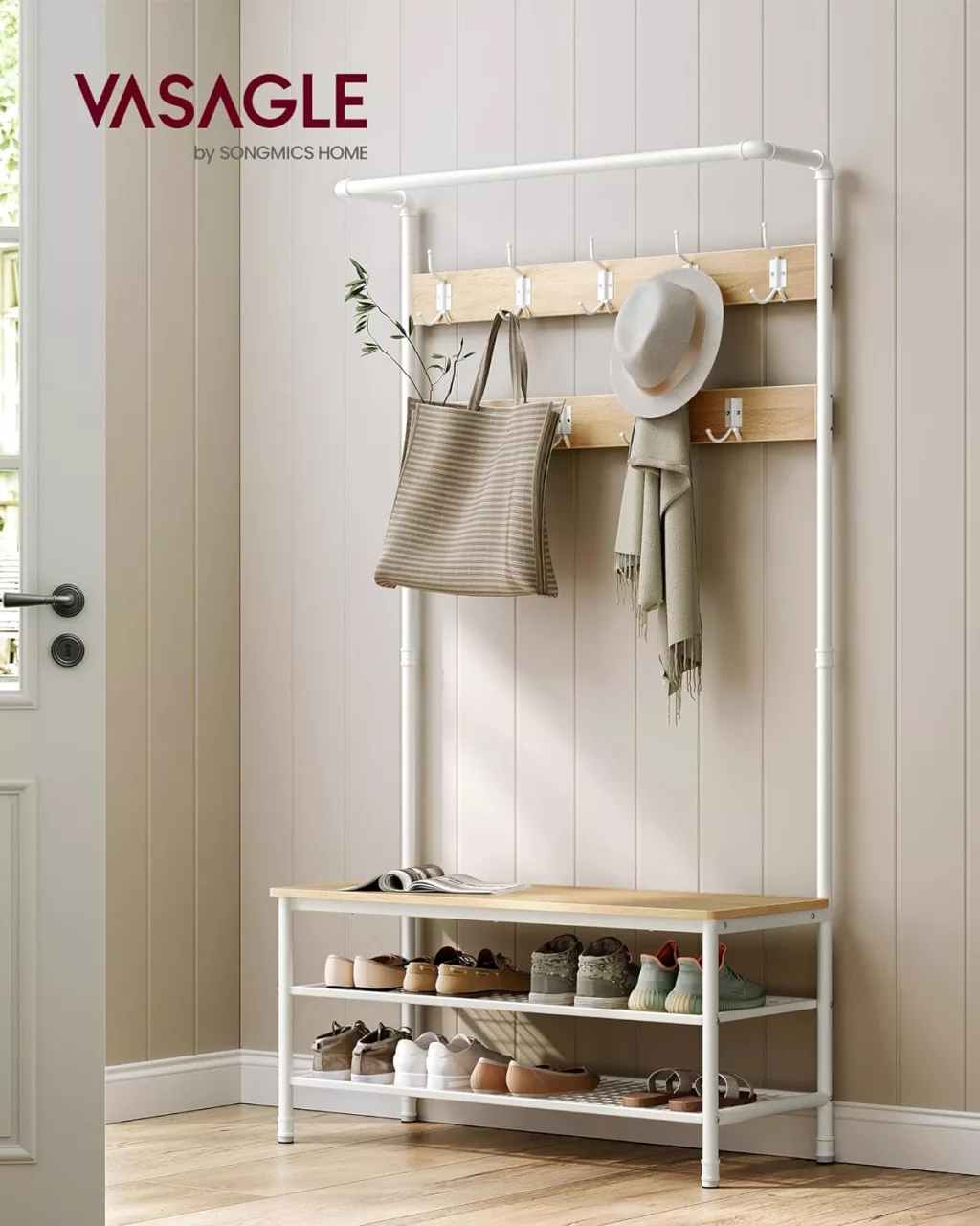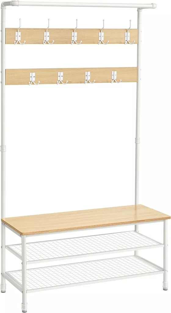VASAGLE Industrial Előszobai Állvány Paddal és Cipőtárolóval Tölgy-Fehér