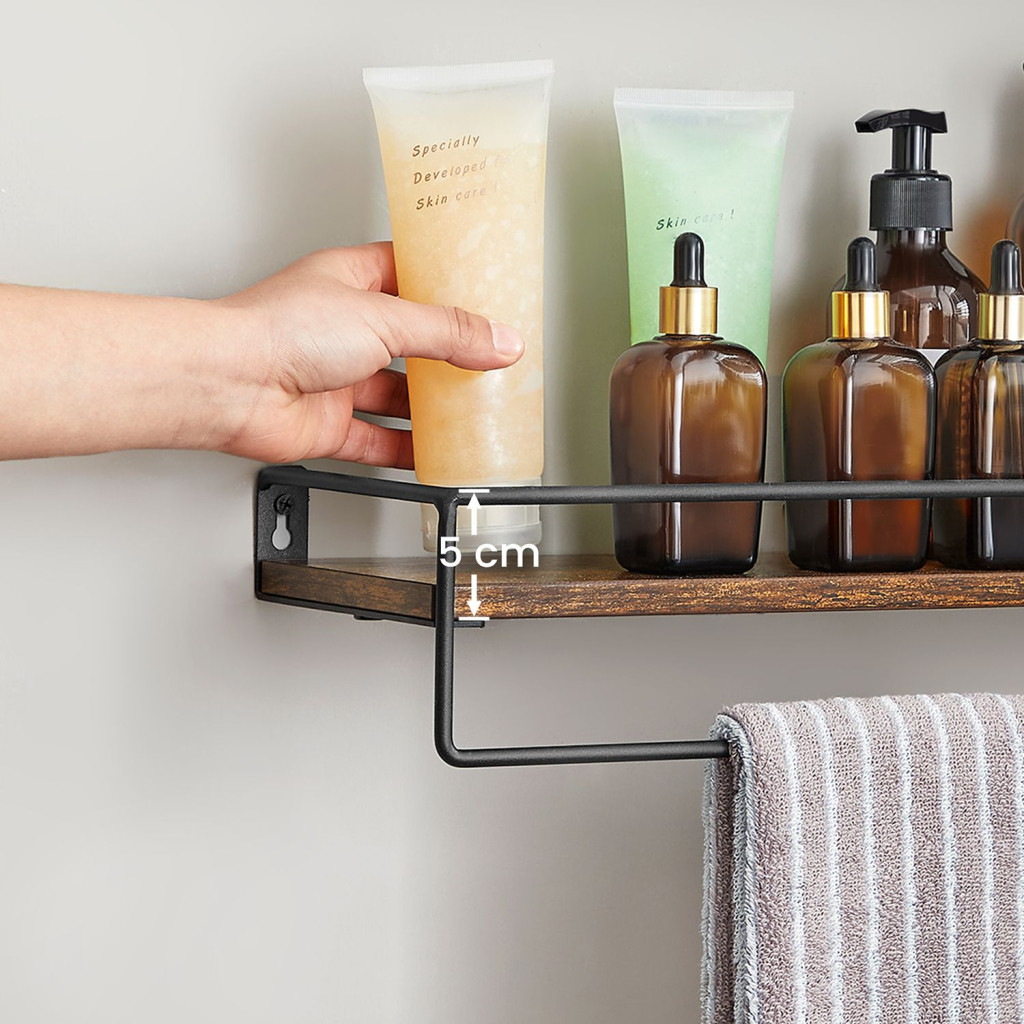 VASAGLE Industrial Fali Polc Szett Rusztikus Barna-Fekete Törölközőtartóval