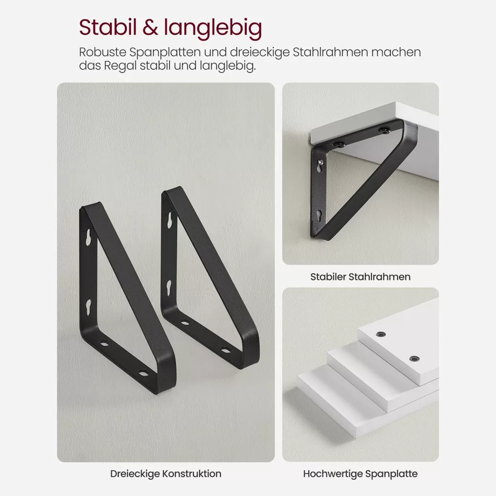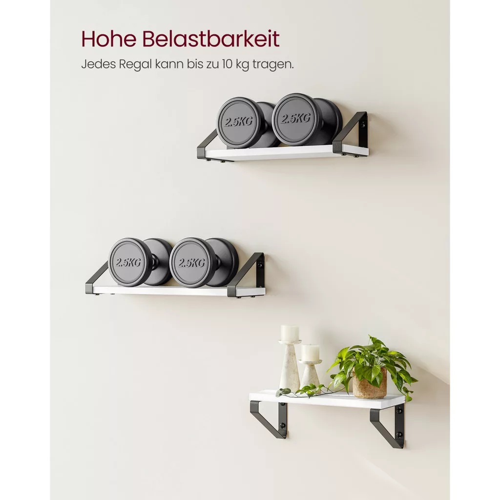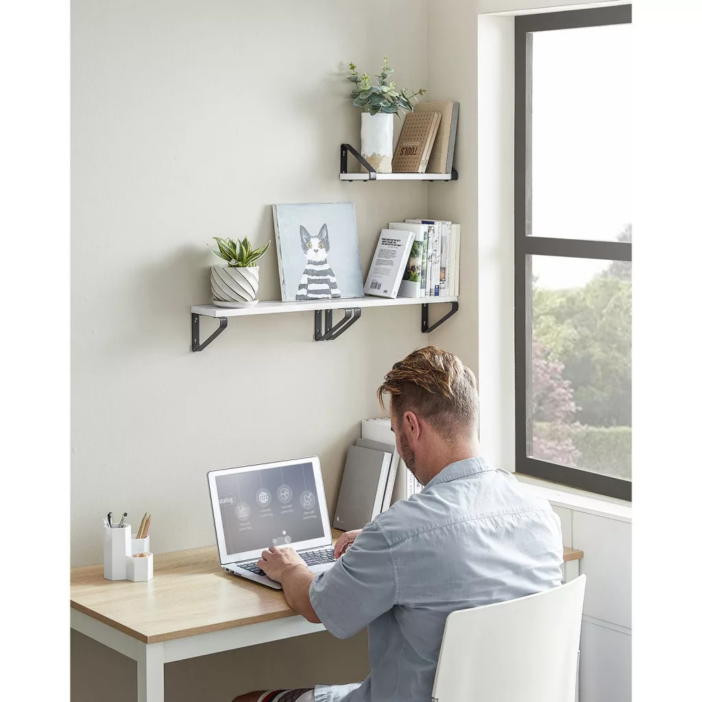 VASAGLE Industrial Lebegő Fali Polc Szett Fehér-Fekete