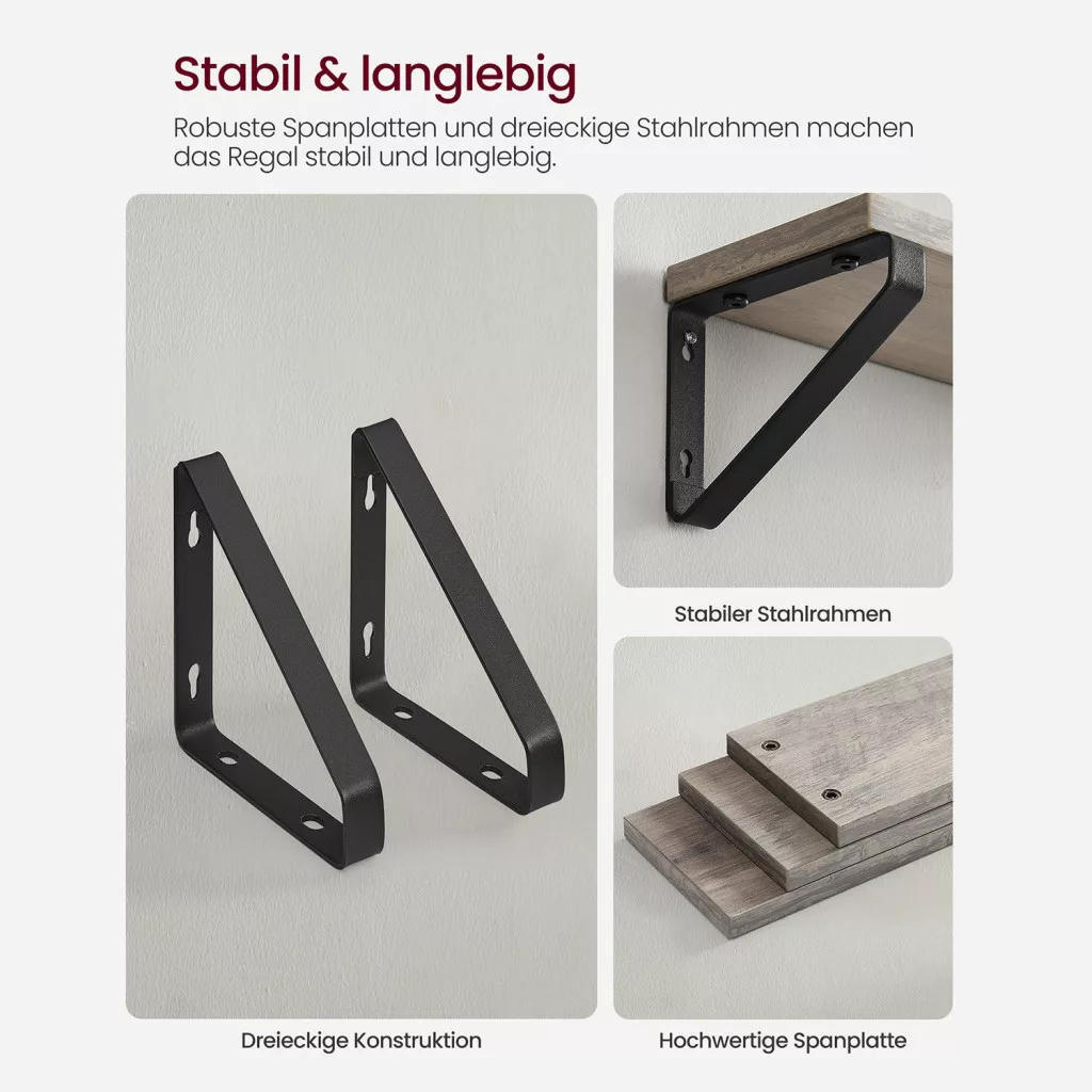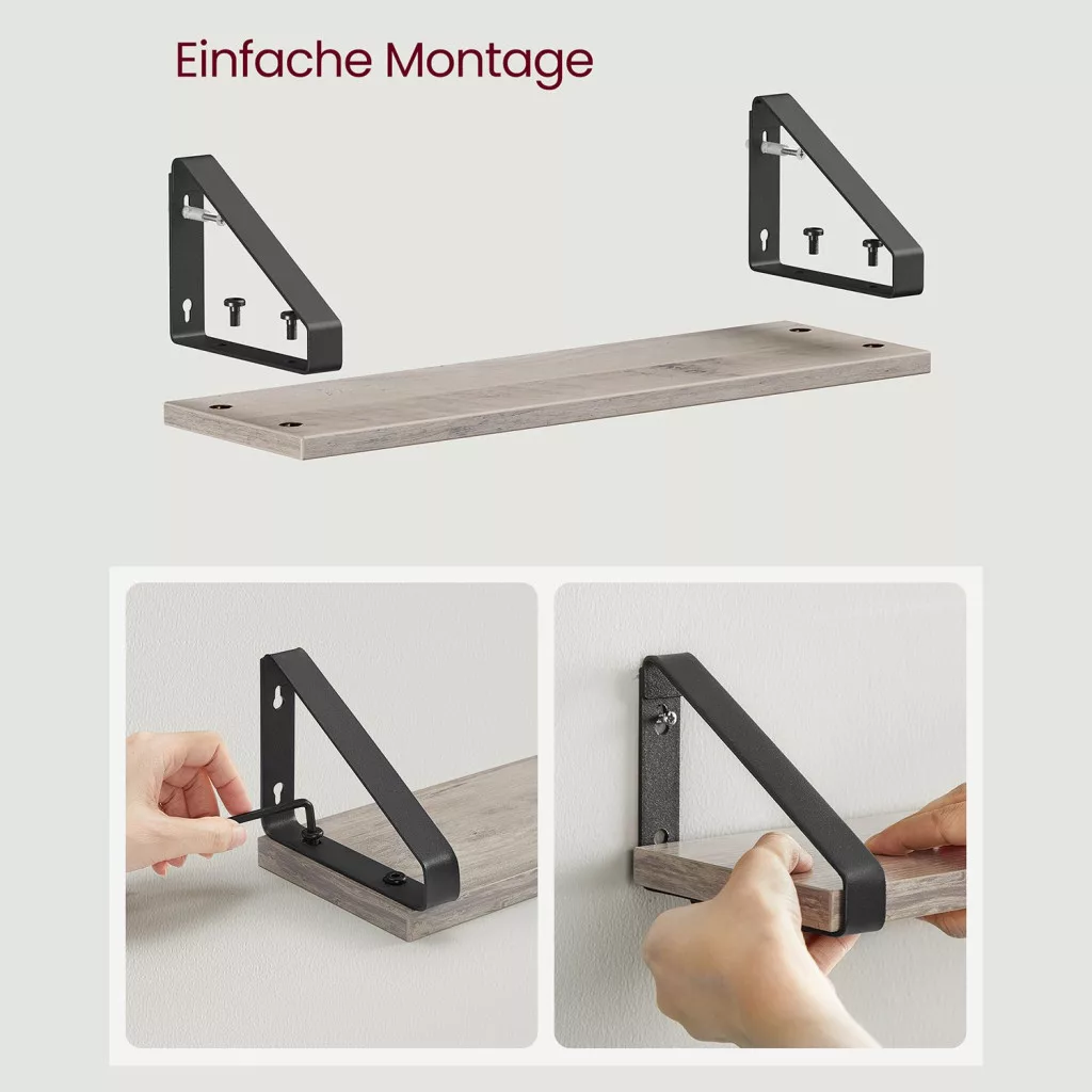 VASAGLE Industrial Lebegő Fali Polc Szett Szürke-Fekete