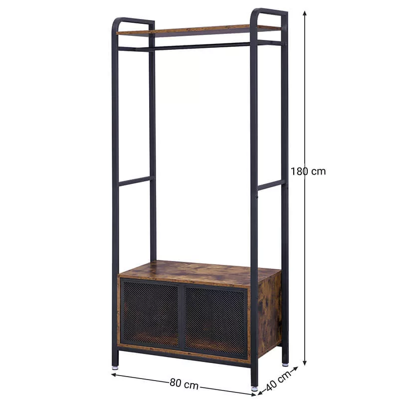 VASAGLE Industrial Nyitott Ruhásszekrény Tárolószekrénnyel Rusztikus Barna-Fekete