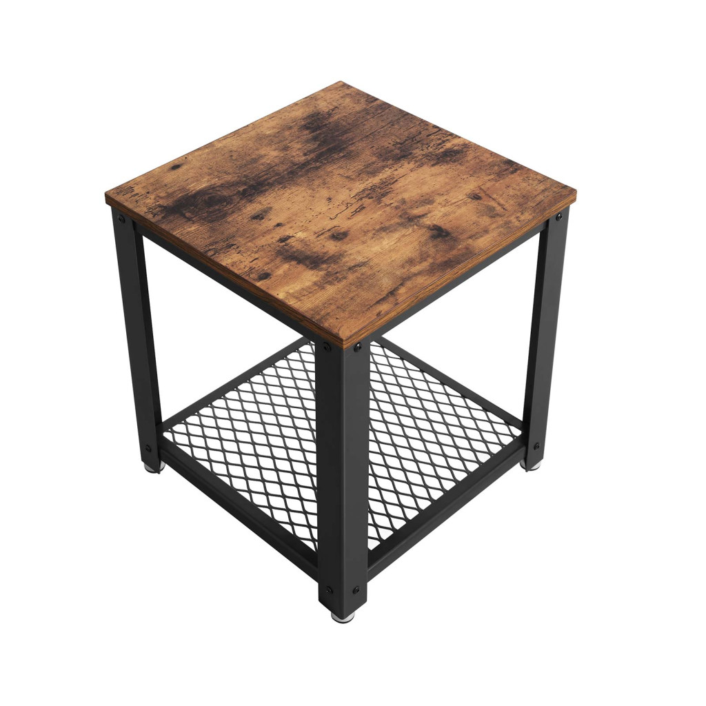 VASAGLE Industrial Vintage Kisasztal Fém Vázzal és Rácsos Polccal