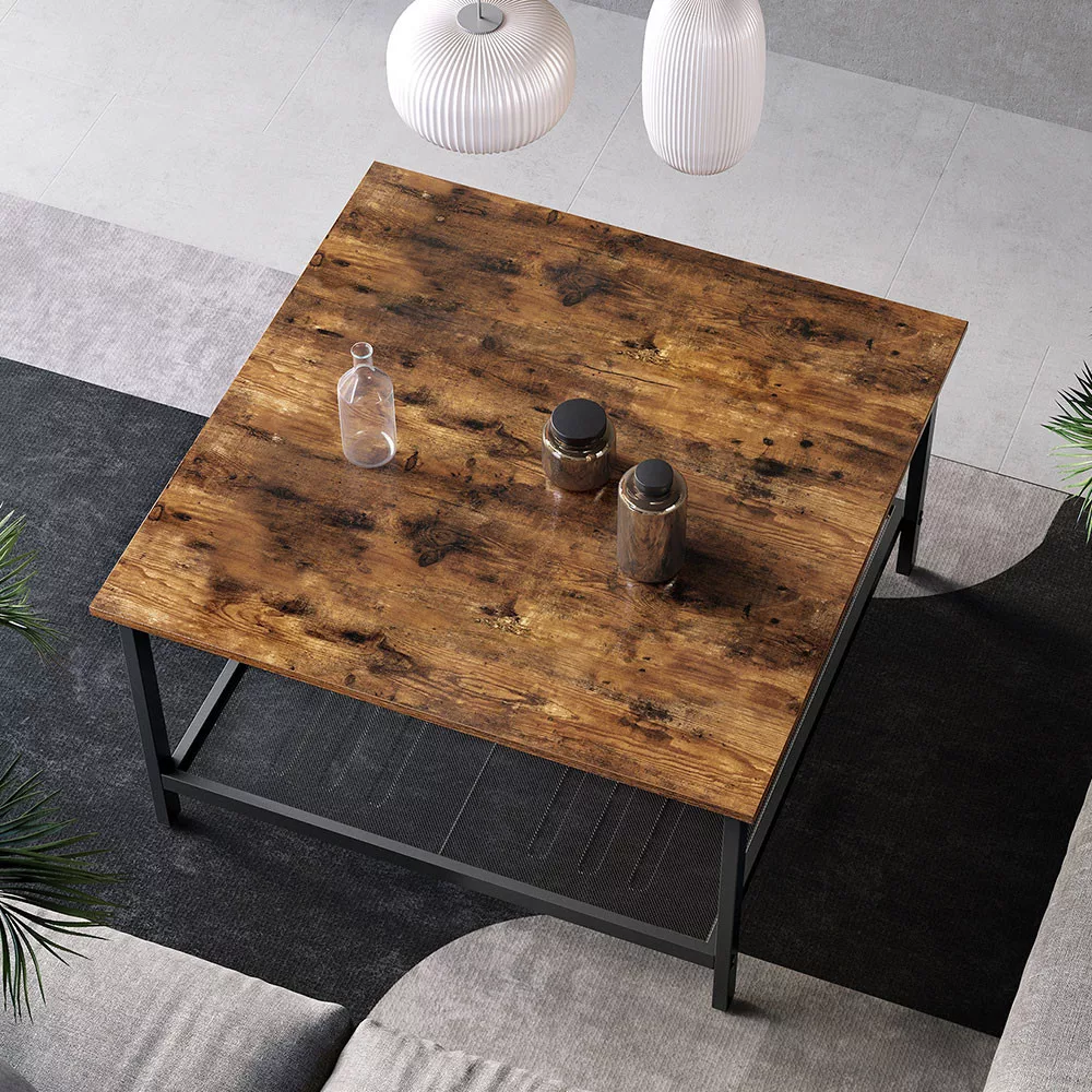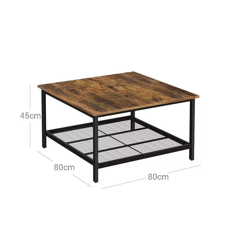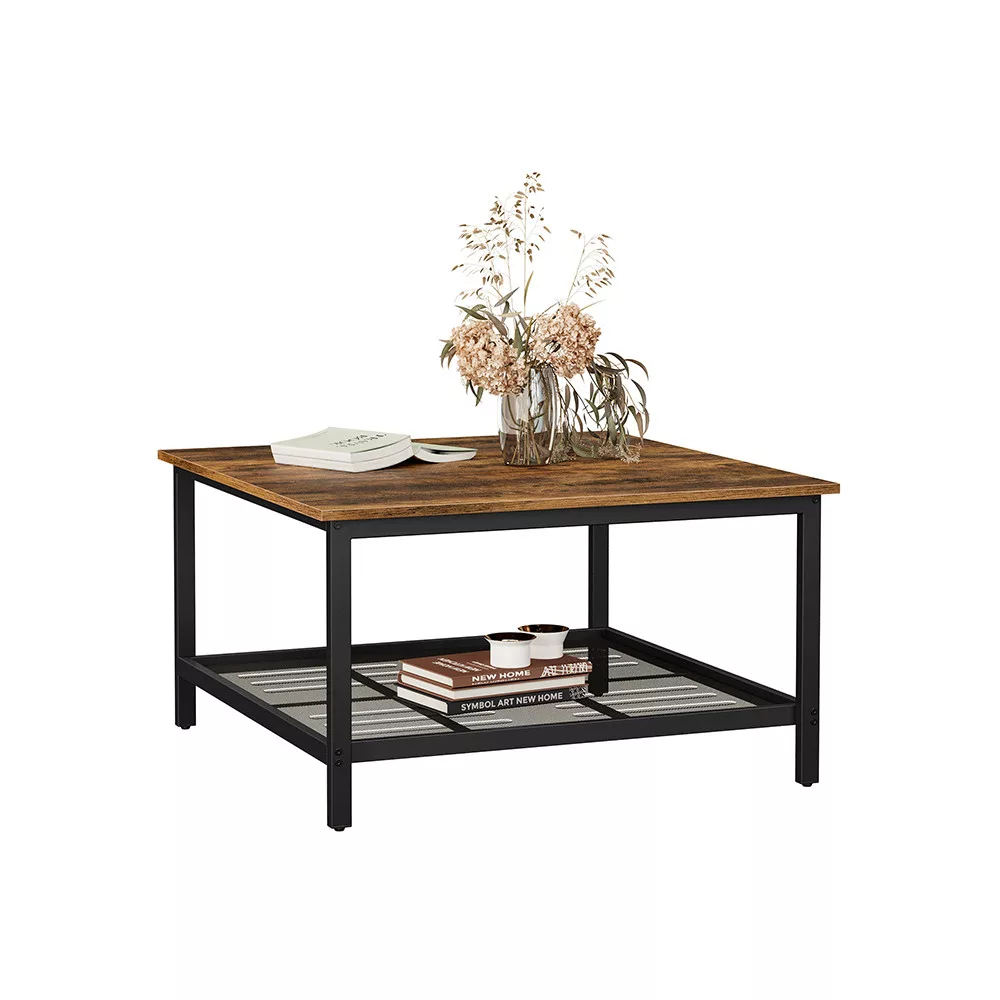 Ez a VASAGLE dohányzóasztal az indusztriális stílus és a praktikusság tökéletes kombinációja. A rusztikus barna asztallap és a robusztus fekete acélváz harmonikus egységet alkot, míg az alsó hálós polc extra tárolóhelyet biztosít.