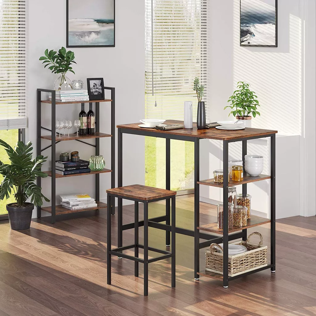 VASAGLE Ipari Bárasztal 3 Polcos Rusztikus Barna Acélvázas
