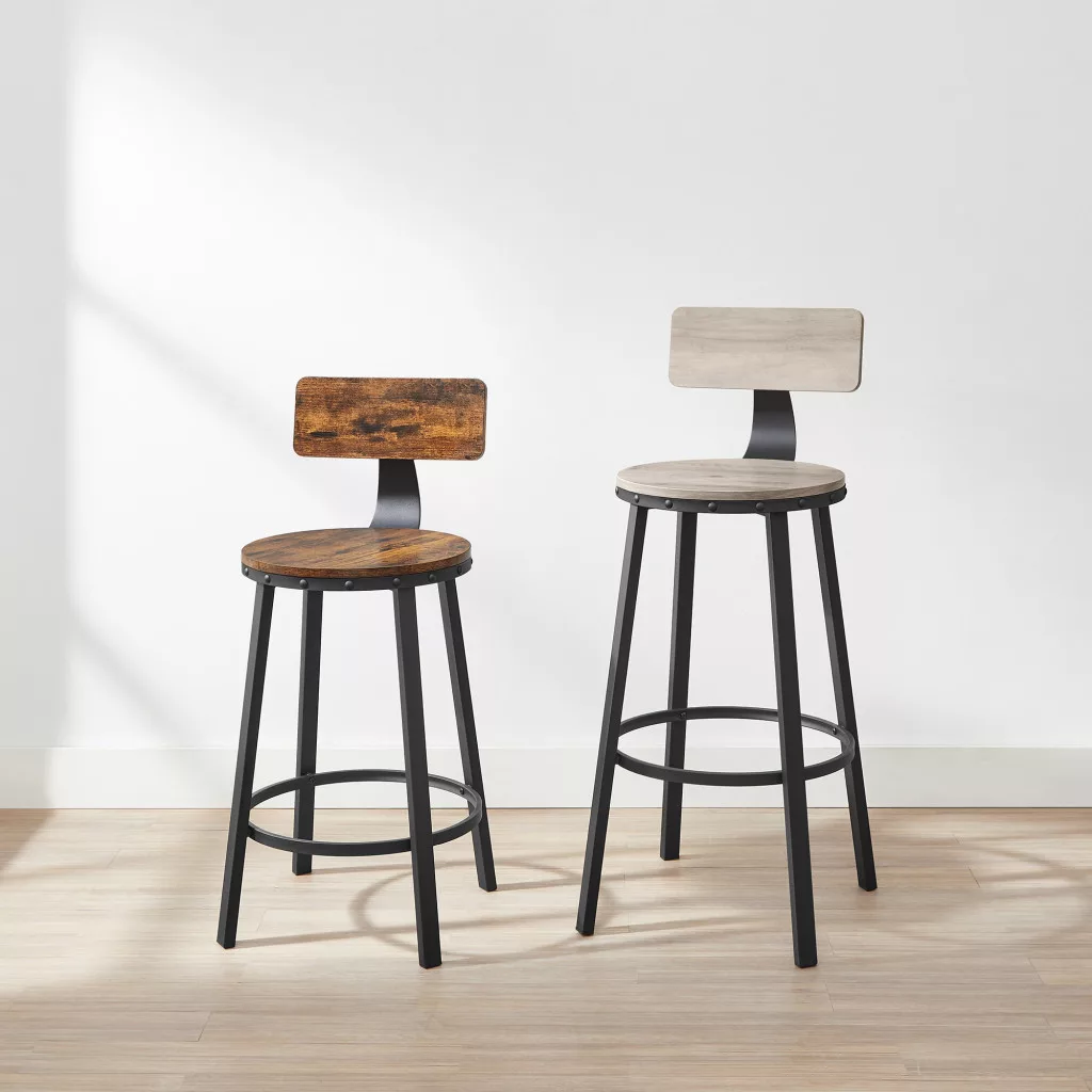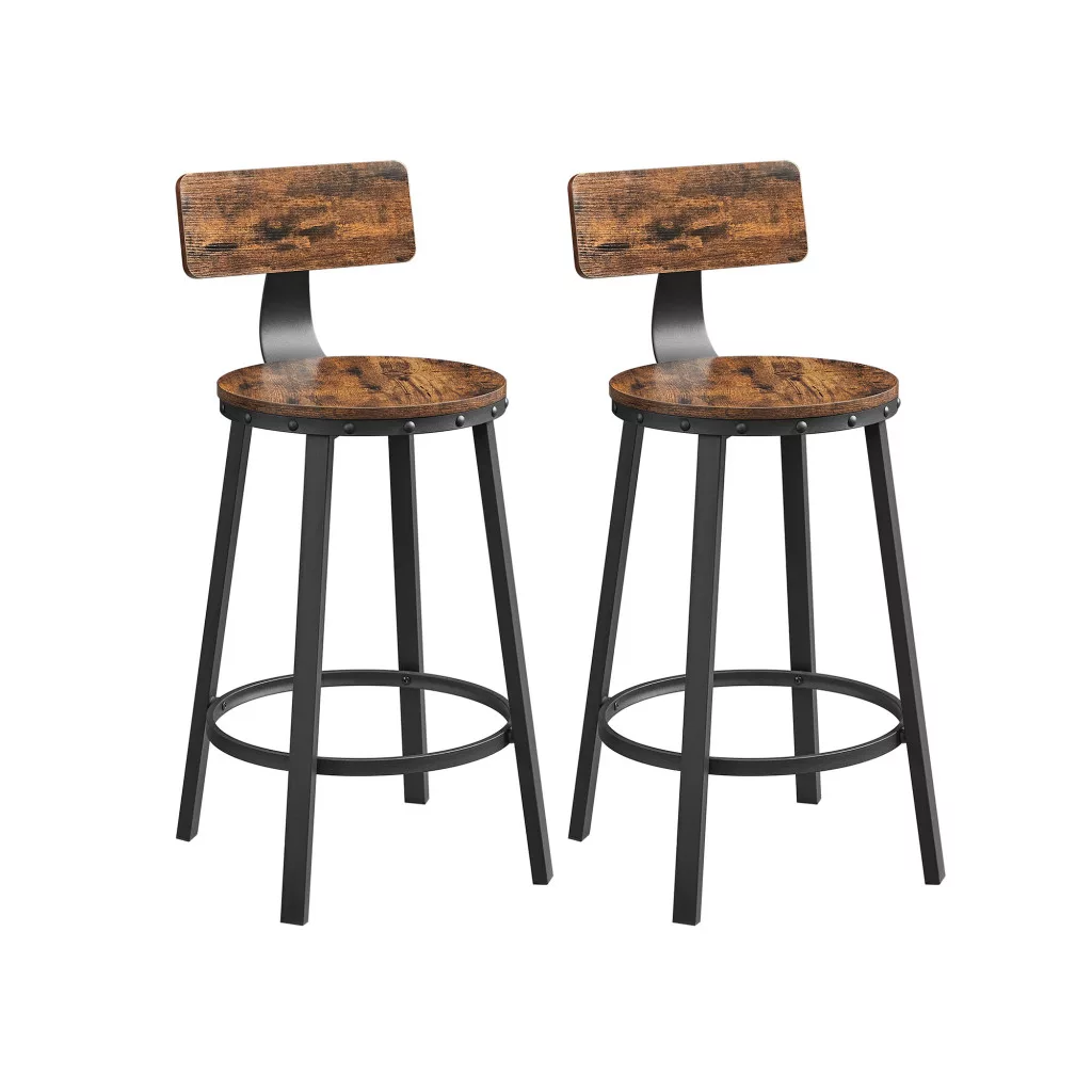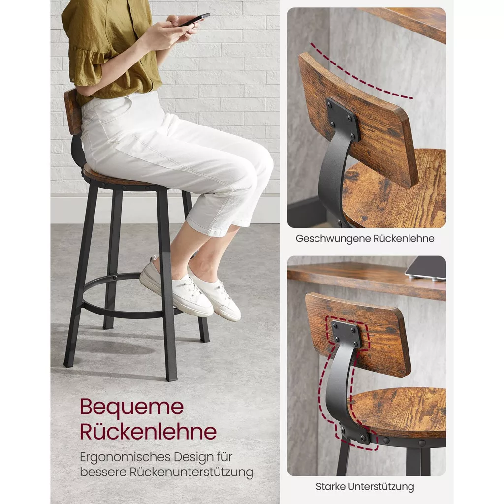 VASAGLE Ipari Bárszék Szett Támlával Rusztikus Barna-Fekete