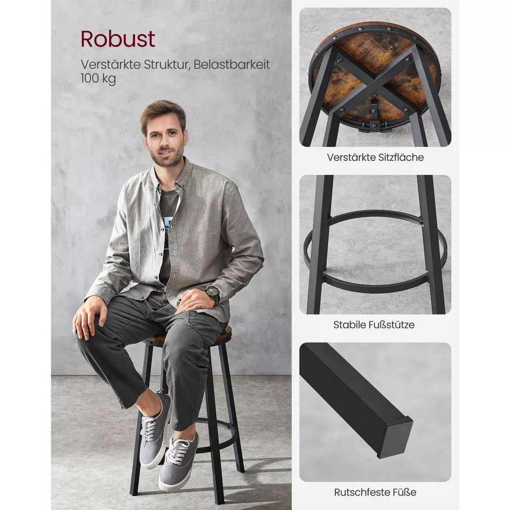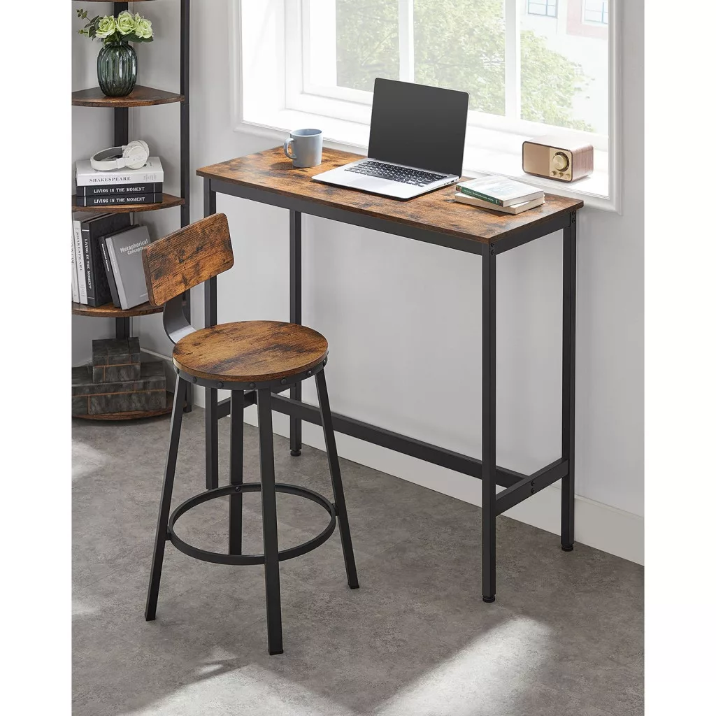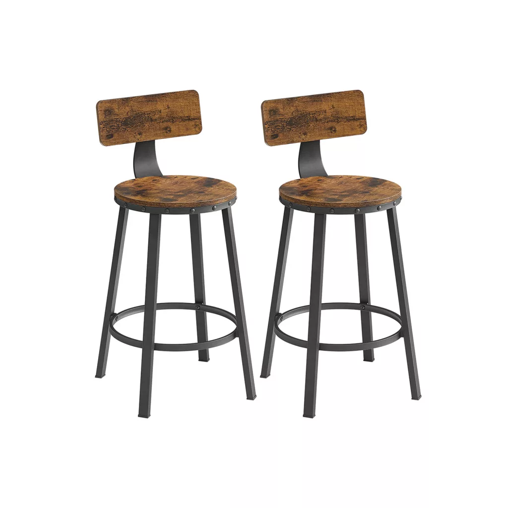 VASAGLE Ipari Bárszék Szett Támlával Rusztikus Barna-Fekete