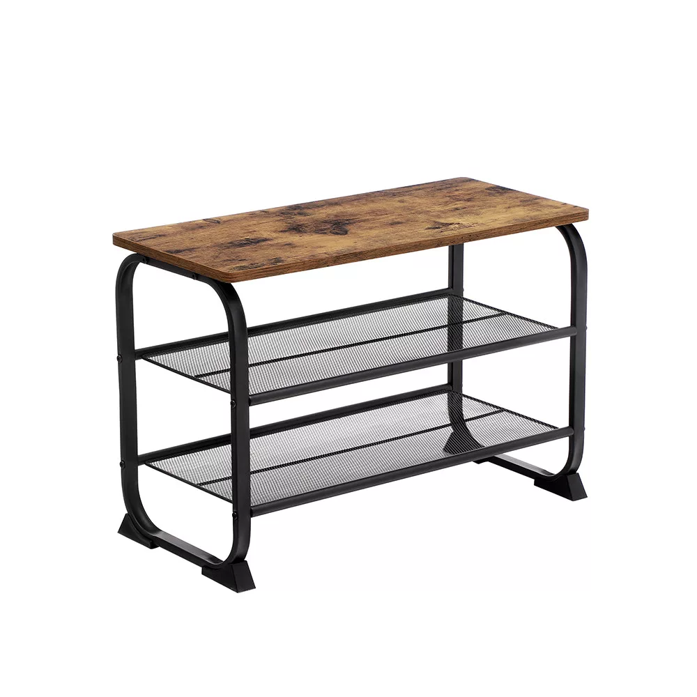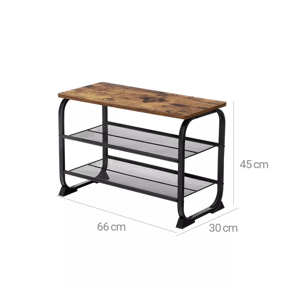 VASAGLE Ipari Cipőtároló Pad Rusztikus Barna Íves Fémvázzal