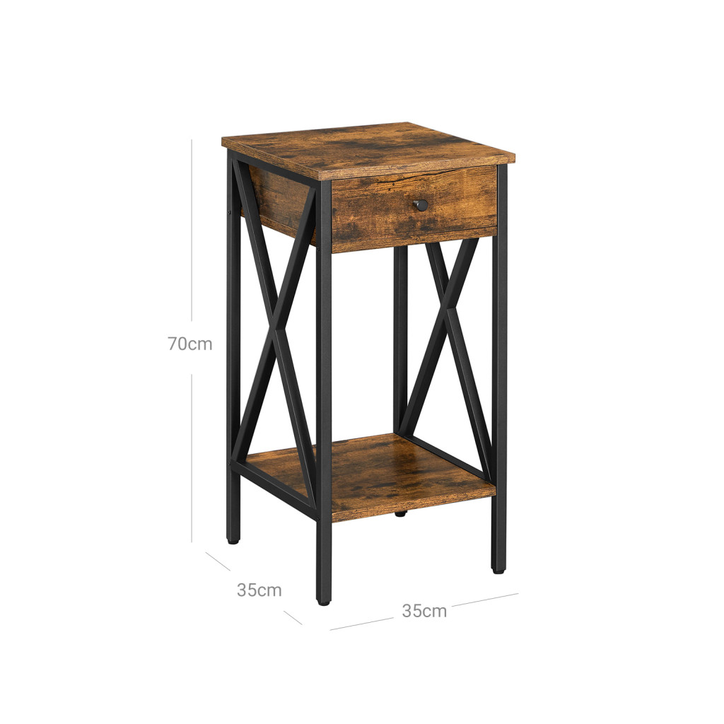 VASAGLE Ipari Éjjeliszekrény Fiókkal és Tárolópolccal Rusztikus Barna-Fekete