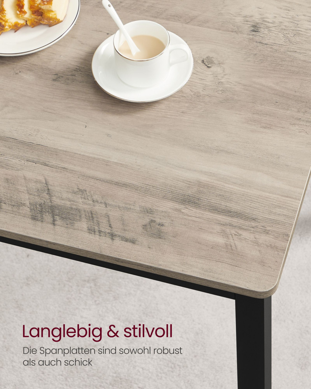 Ez a VASAGLE étkezőgarnitúra tökéletes választás modern otthonokba, ahol minden négyzetméter számít. A szürke árnyalatú asztallap és a fekete acélváz kombinációja időtlen ipari megjelenést kölcsönöz, miközben praktikus kialakítása maximalizálja a rendelkezésre álló teret.