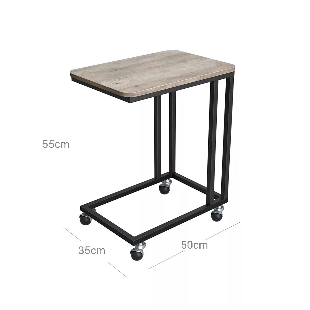 VASAGLE Ipari Görgős Kisasztal Szürke-Bézs Fával és Fekete Fémvázzal