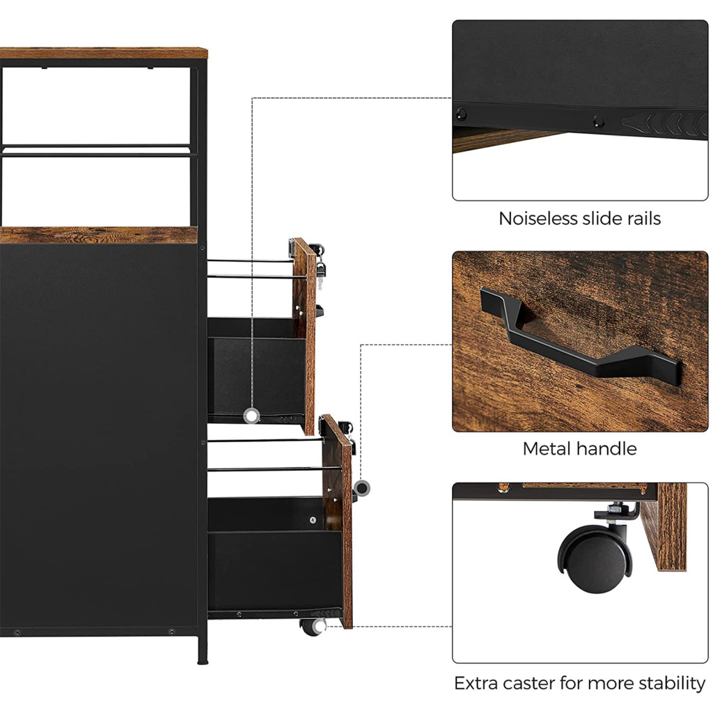 VASAGLE Ipari Irattartó Szekrény Nyitott Polccal Acélvázzal Rusztikus Barna-Fekete