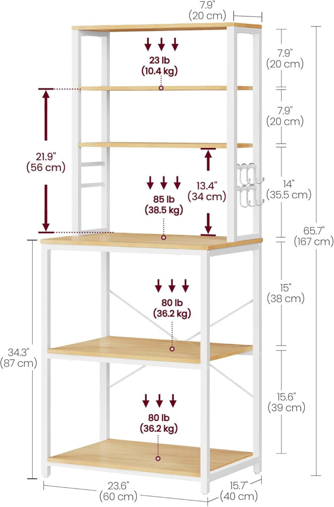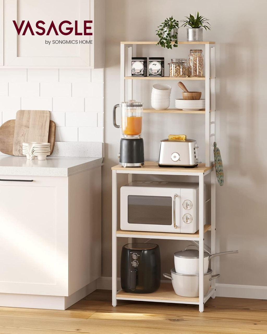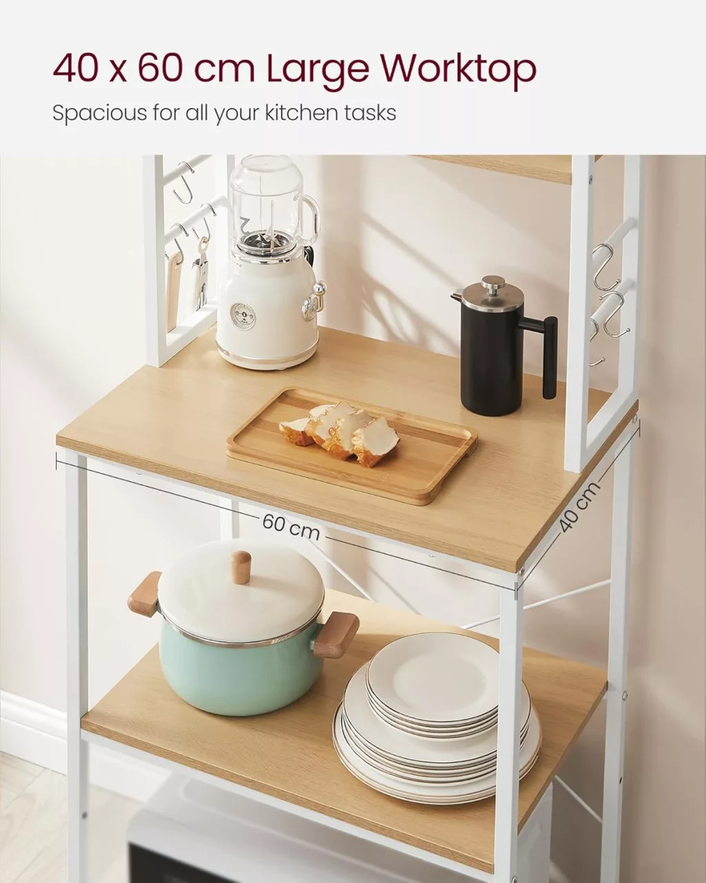VASAGLE Ipari Konyhai Állvány 6 Polccal és 6 Akasztóval Tölgy-Fehér