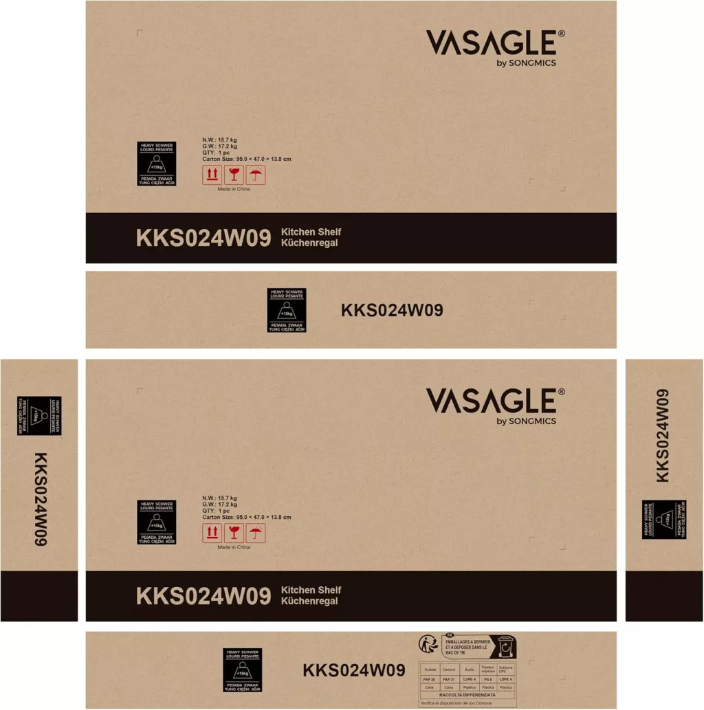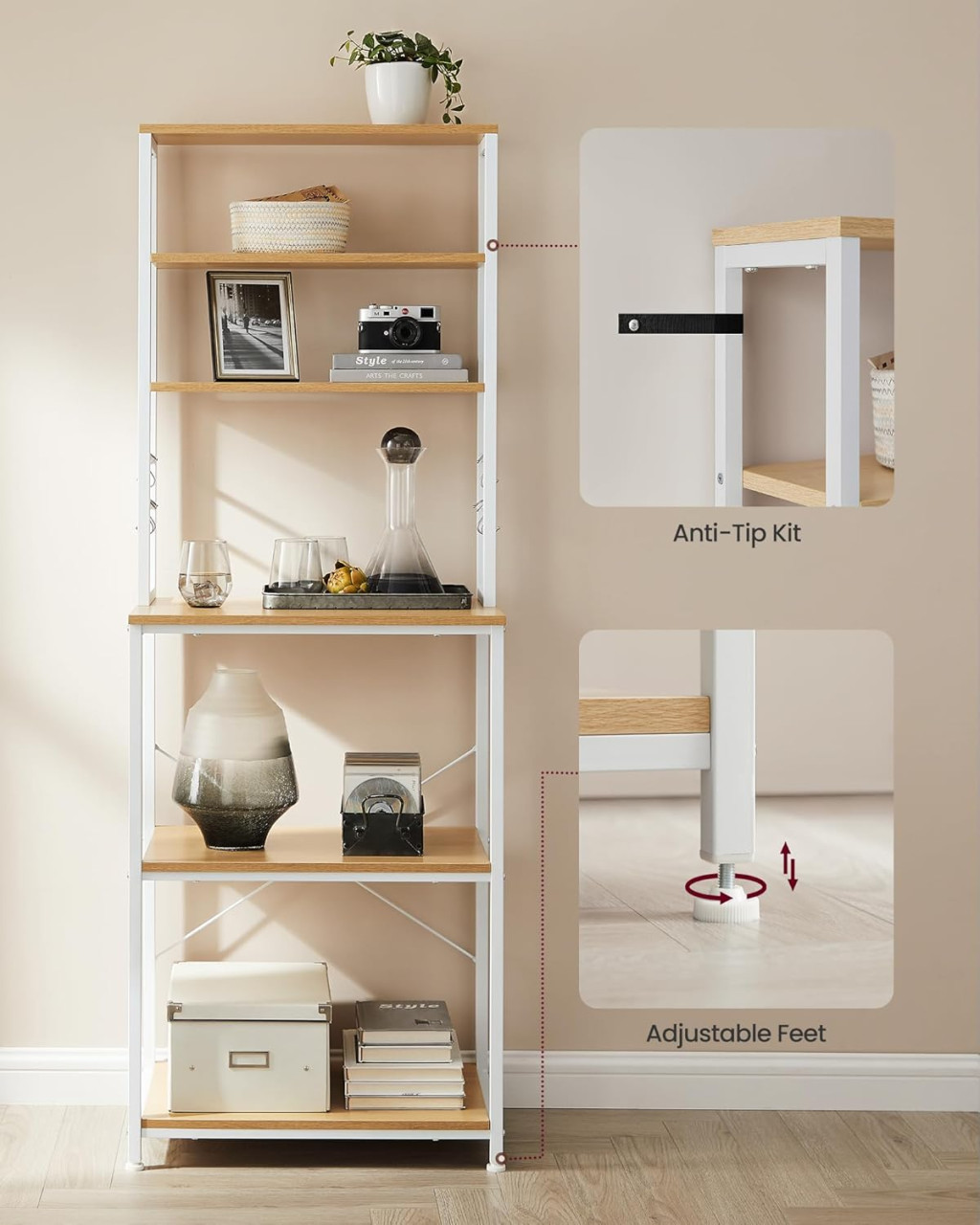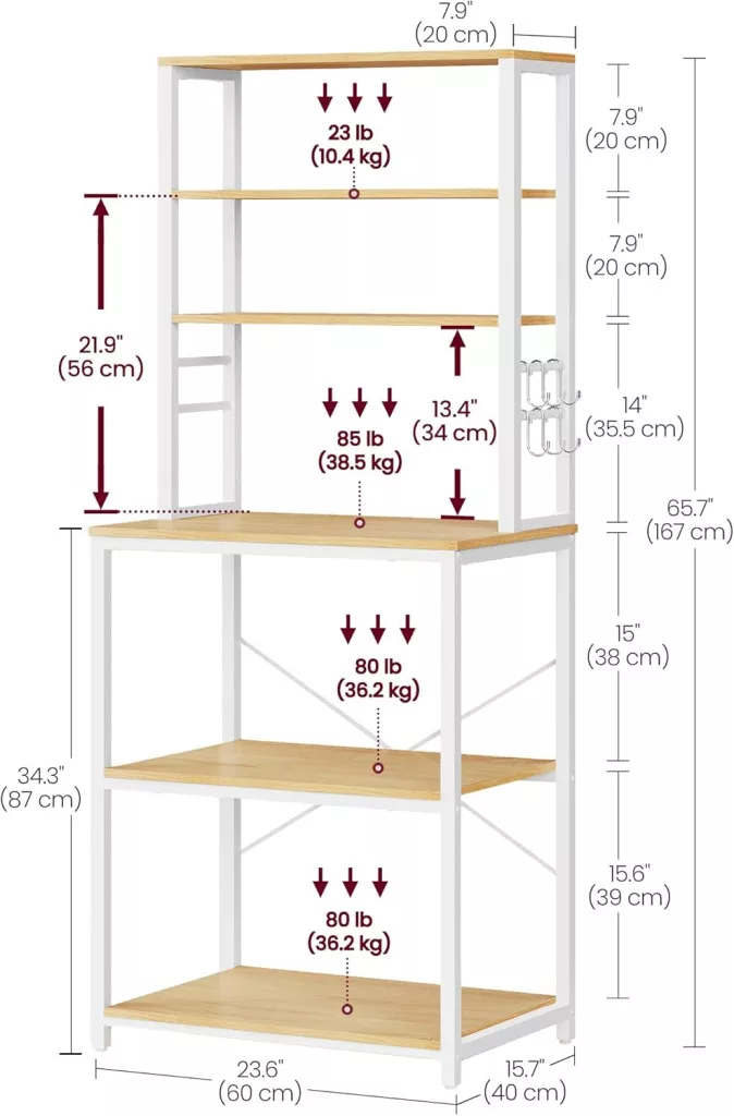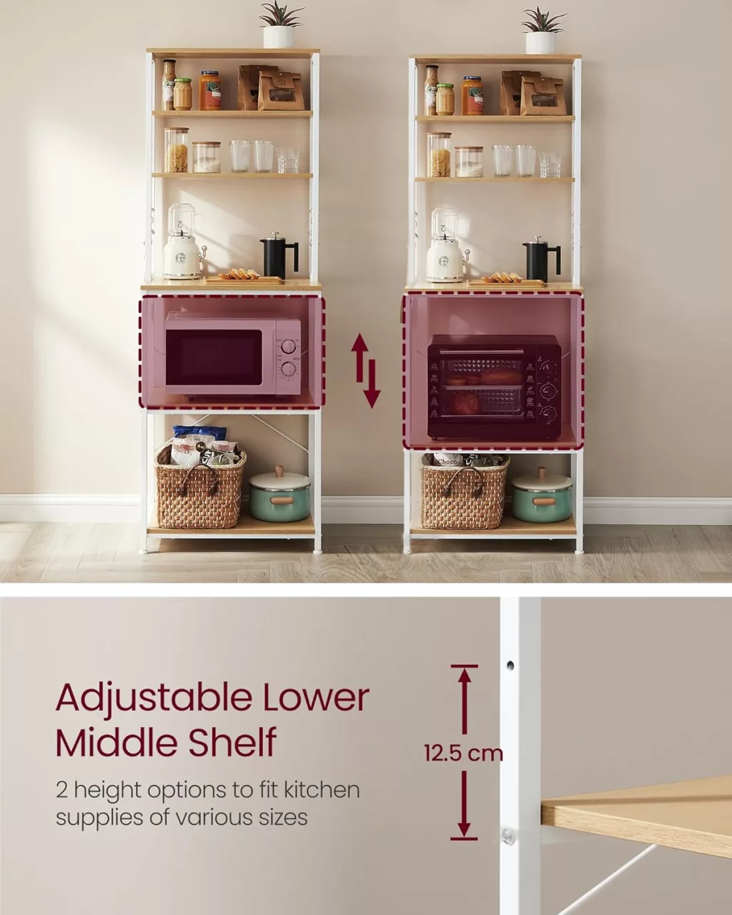 VASAGLE Ipari Konyhai Állvány 6 Polccal és 6 Akasztóval Tölgy-Fehér