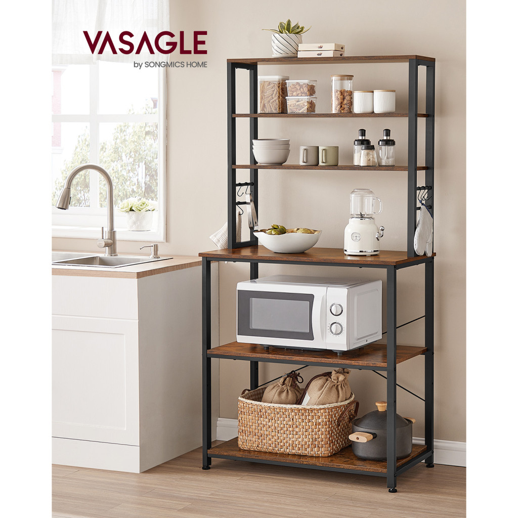 VASAGLE Ipari Konyhai Állvány 6 Polccal és 6 Kampóval Vintage Barna/Fekete