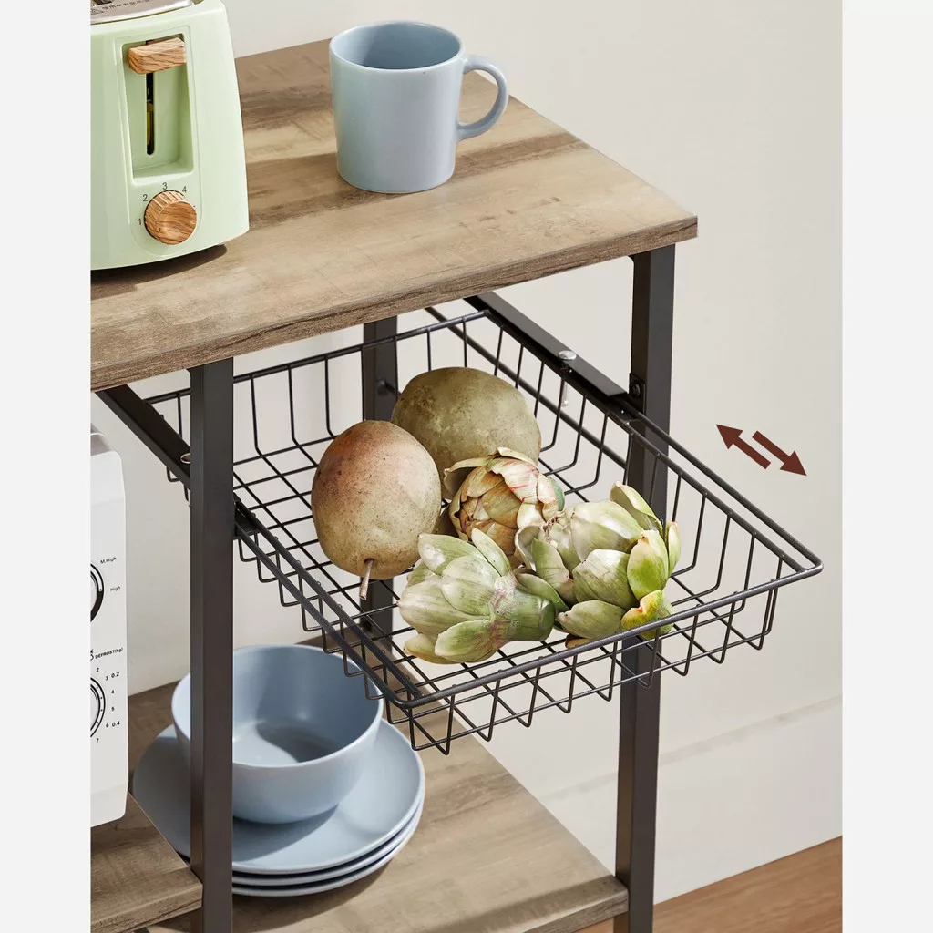VASAGLE Ipari Konyhai Állvány Fém Kosárral Tölgy-Fekete