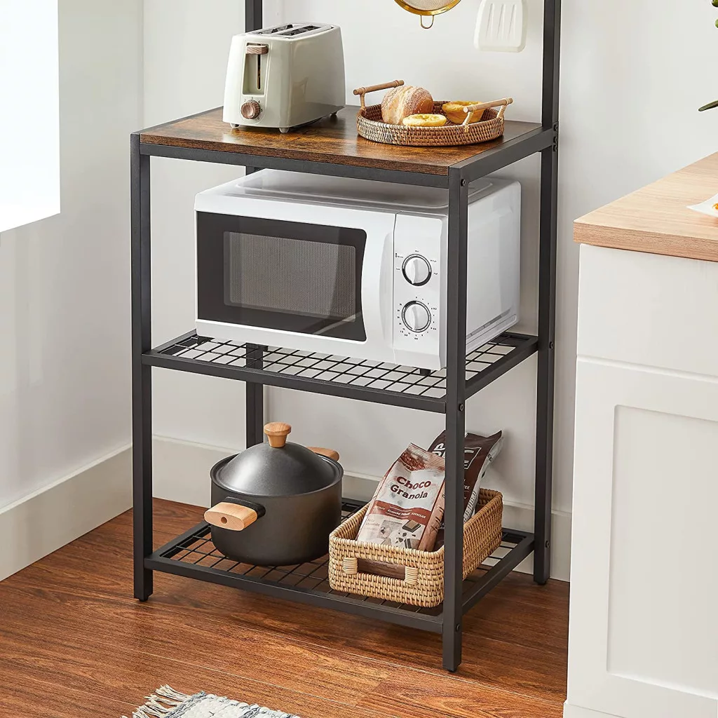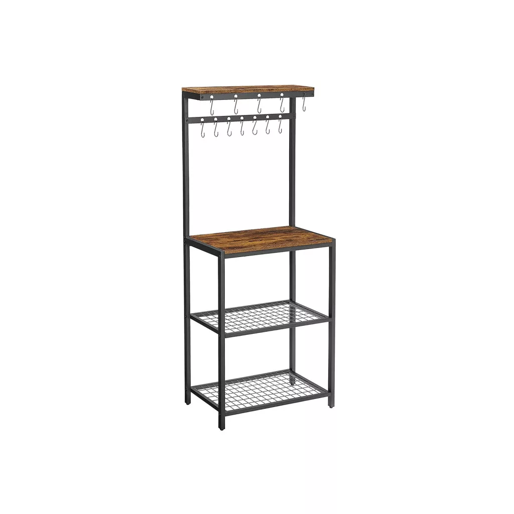 VASAGLE Ipari Konyhai Állvány Mikrohullámú Sütő Tartó Polcrendszer Rusztikus Barna-Fekete