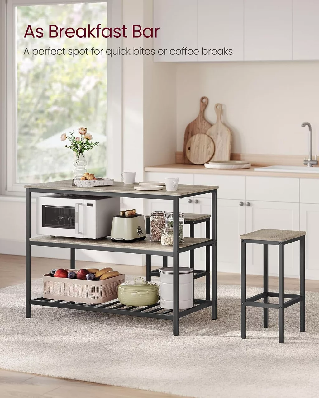 VASAGLE Ipari Konyhai Sziget 120 cm Háromsoros Polcrendszerrel Szürke-Bézs