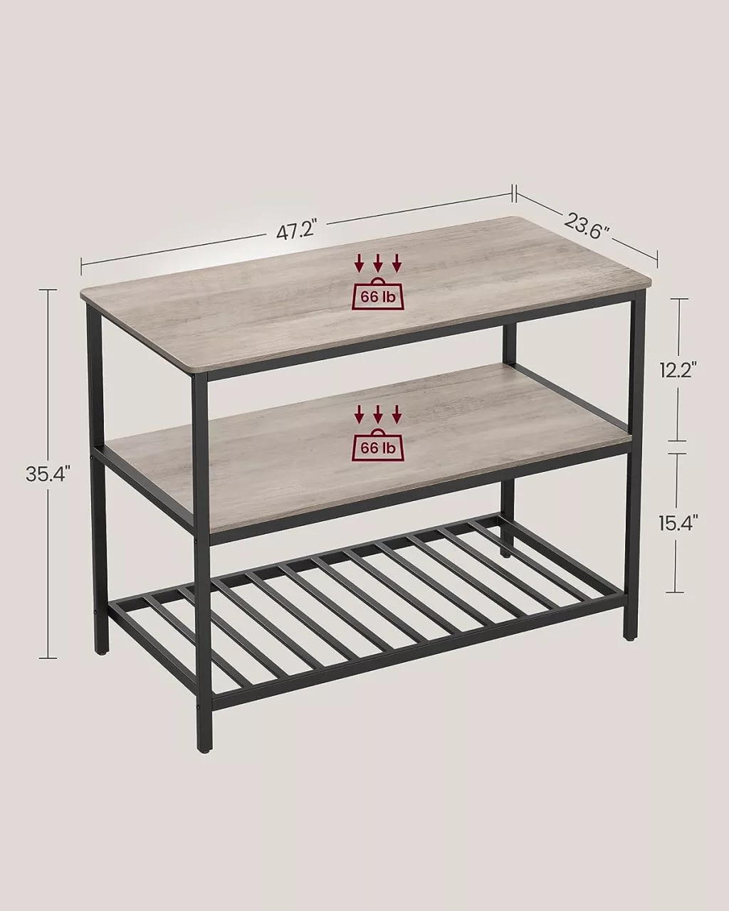 • Ipari dizájn: Időtálló megjelenés acél vázzal és greige színű polcokkal