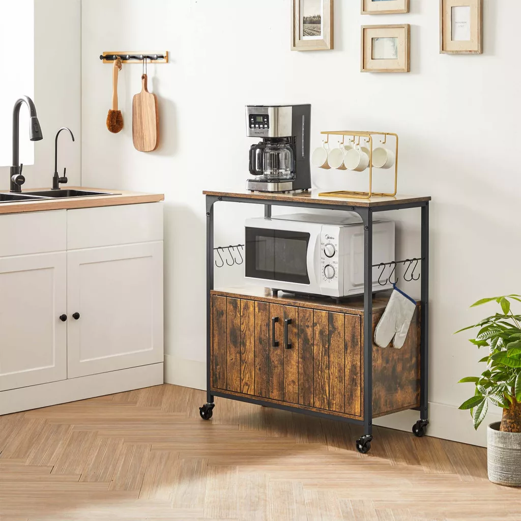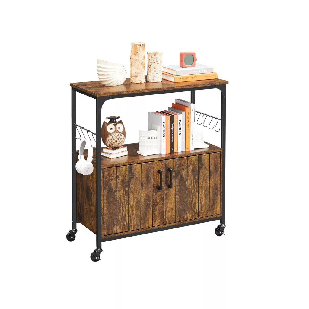 VASAGLE Ipari Konyhai Tárolószekrény Görgőkkel Rusztikus Barna-Fekete