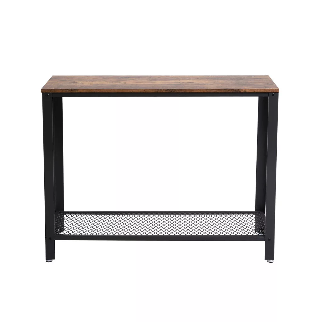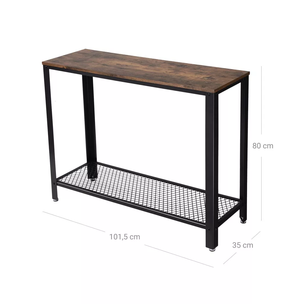 VASAGLE Ipari Konzolasztal Rusztikus Barna-Fekete Fém Hálós Polccal