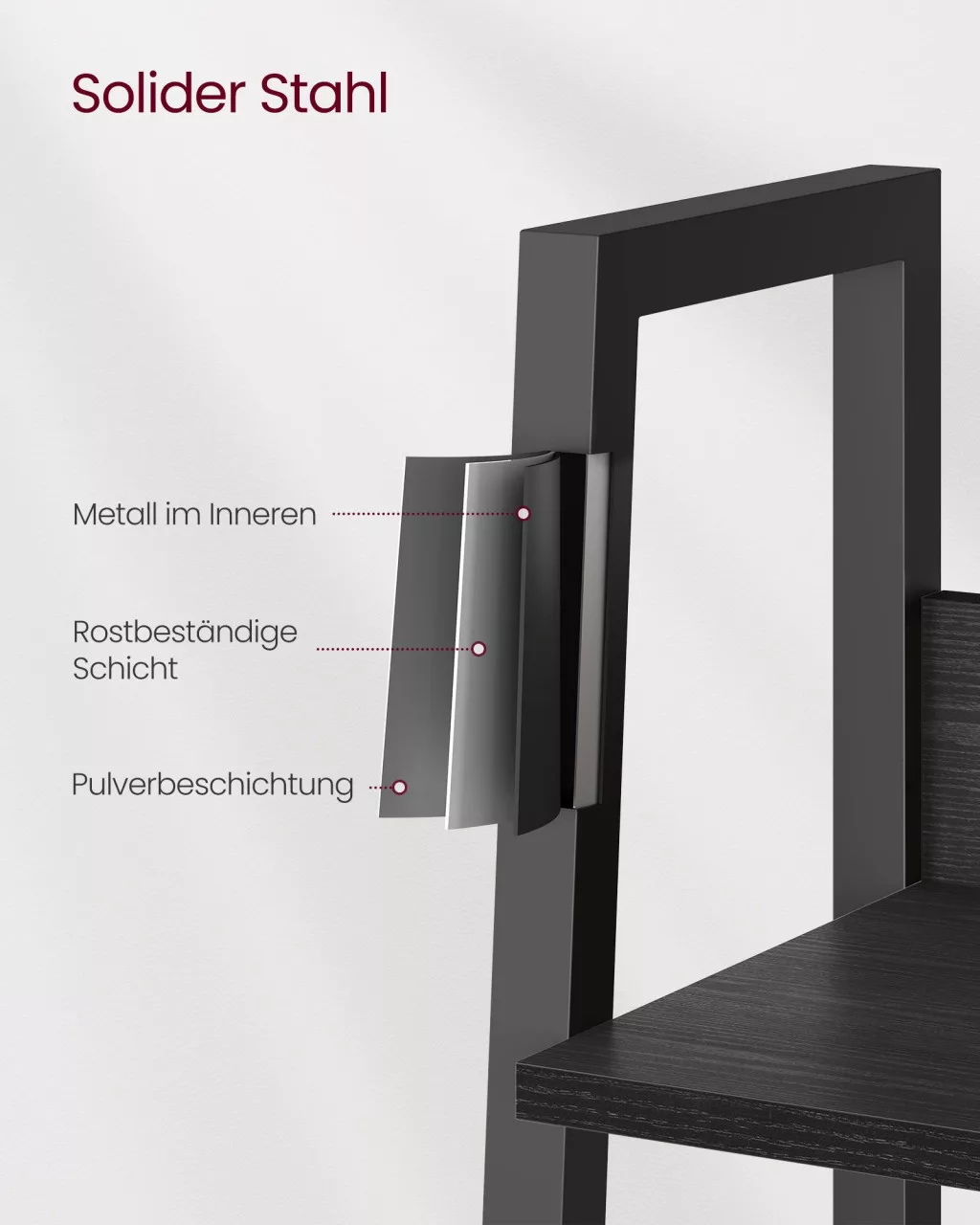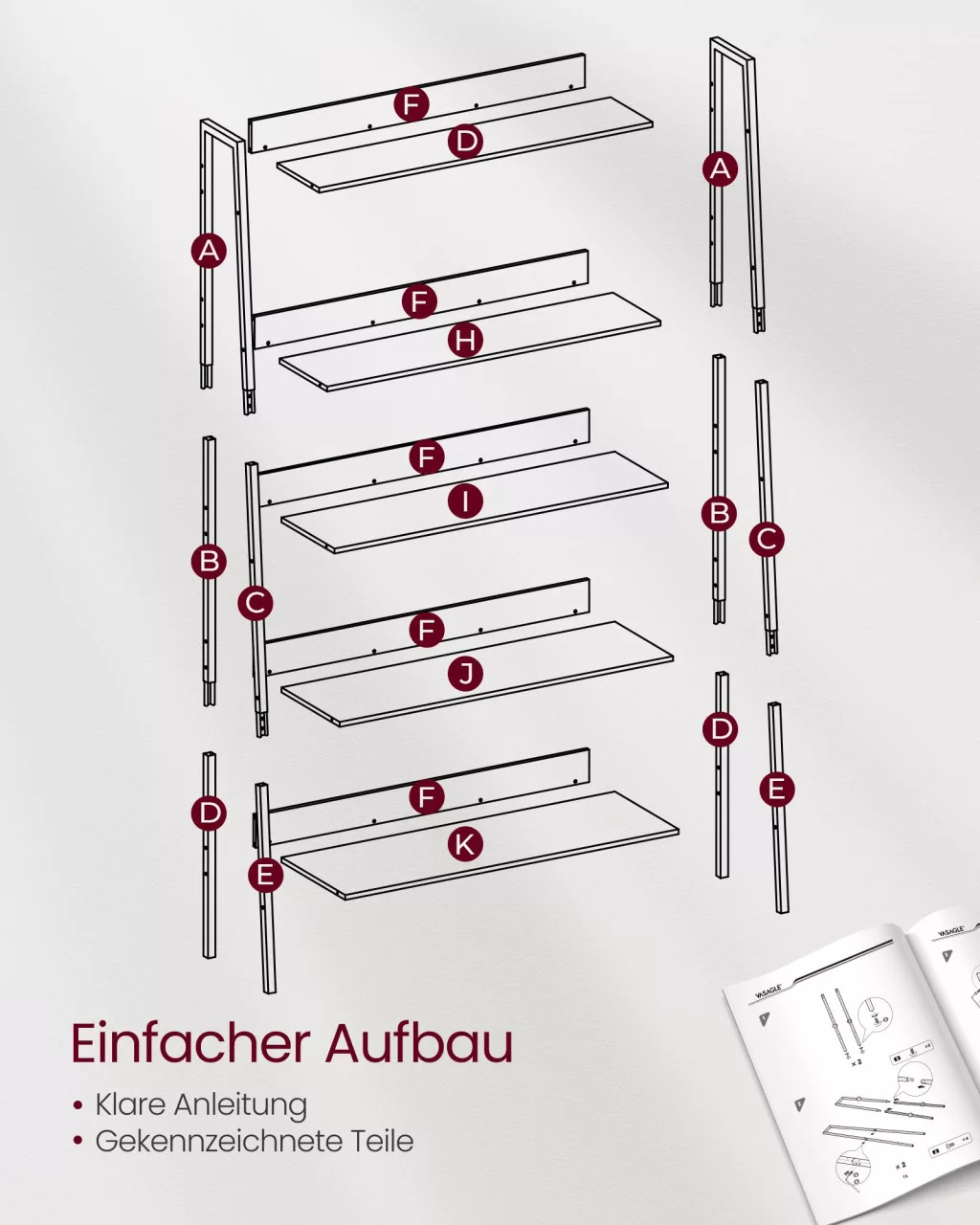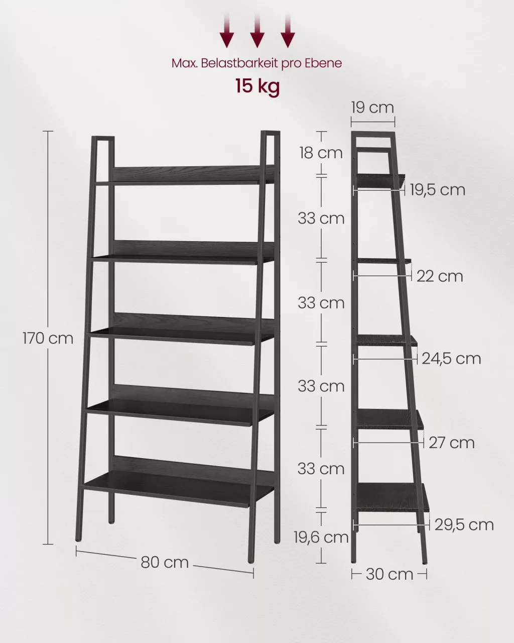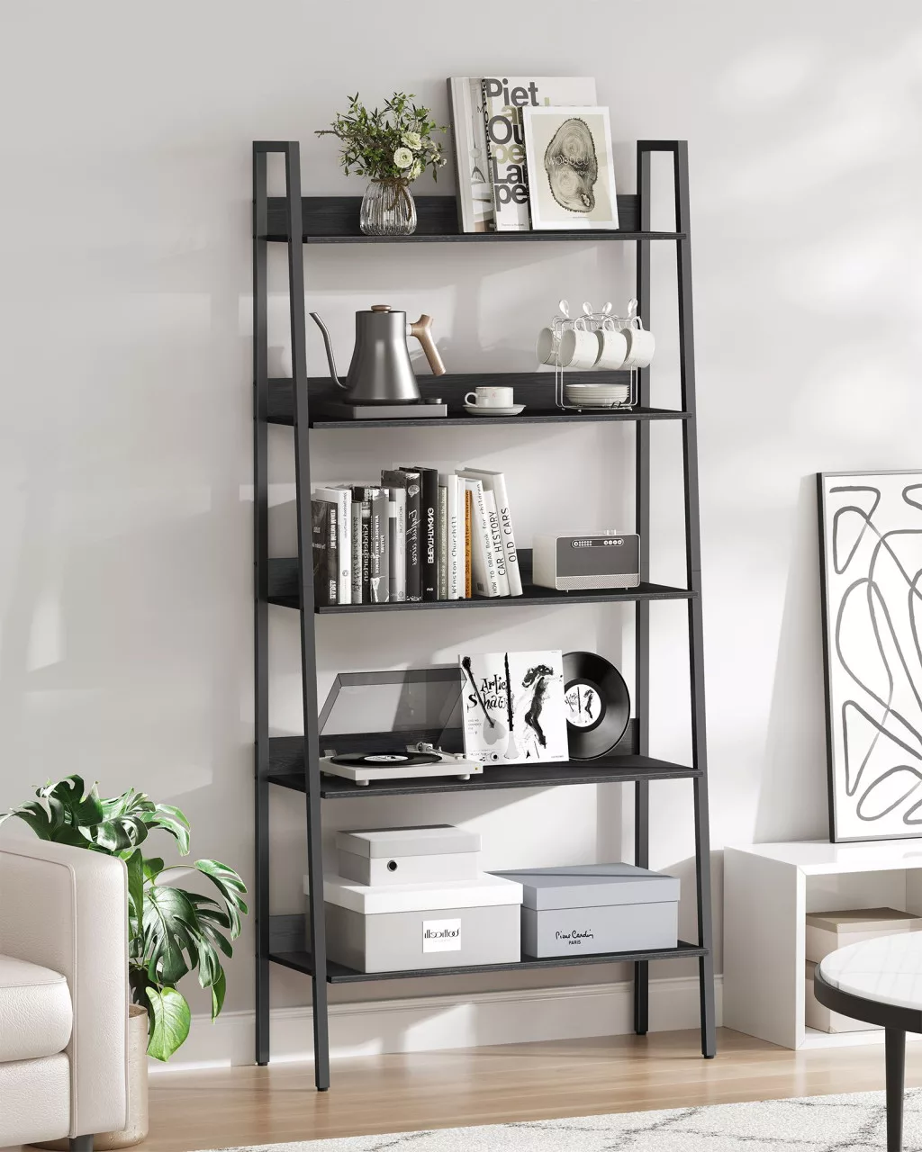Ez a VASAGLE létrás könyvespolc a modern otthonok praktikus és stílusos kiegészítője. Az ébenfa fekete polcok és a fekete acélváz kombinációja időtlen eleganciát sugároz, miközben a létrás kialakítás maximálisan kihasználja a függőleges teret.