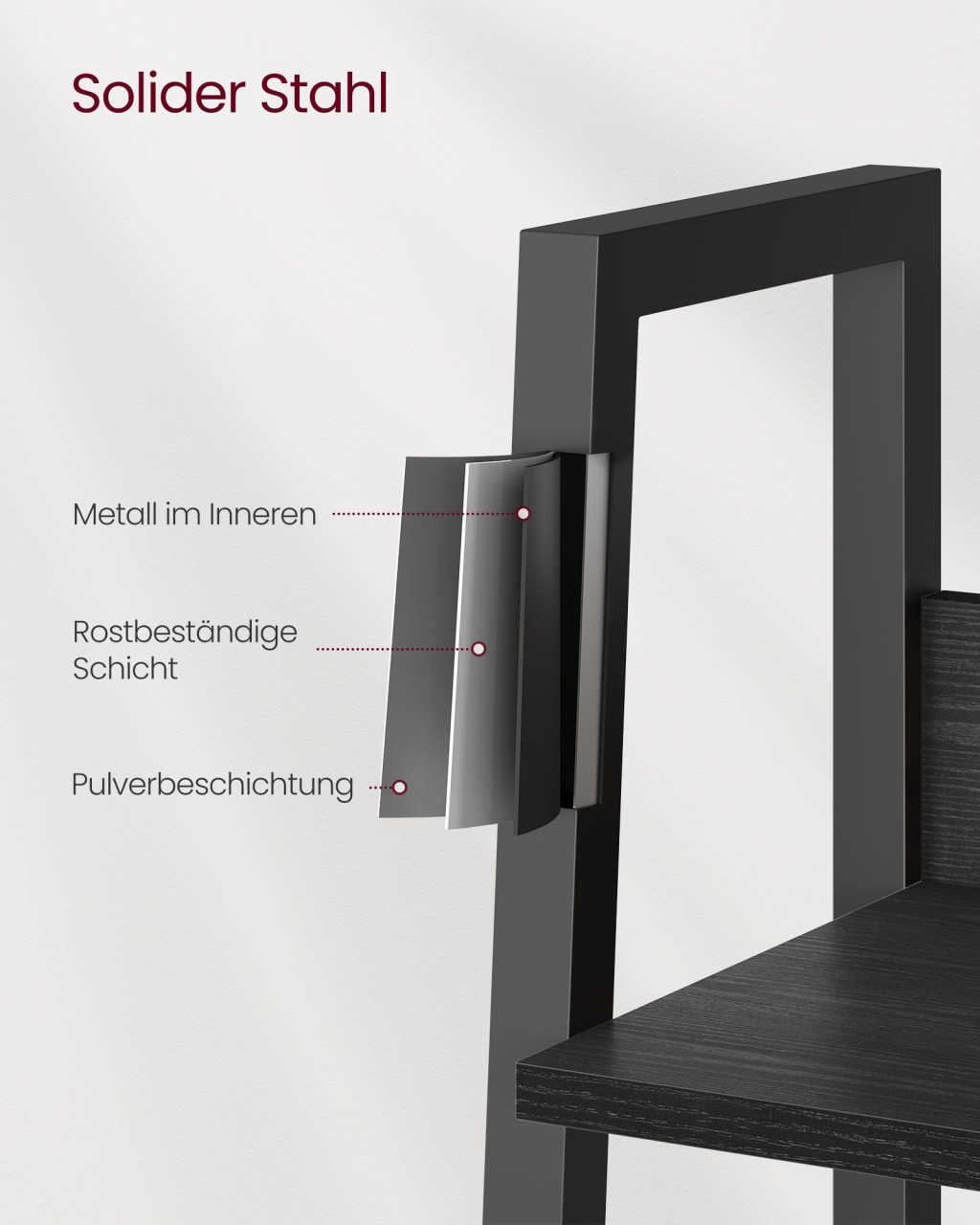 VASAGLE Ipari Létrás Könyvespolc 4-Szintes Acélvázas Ébenfa Fekete