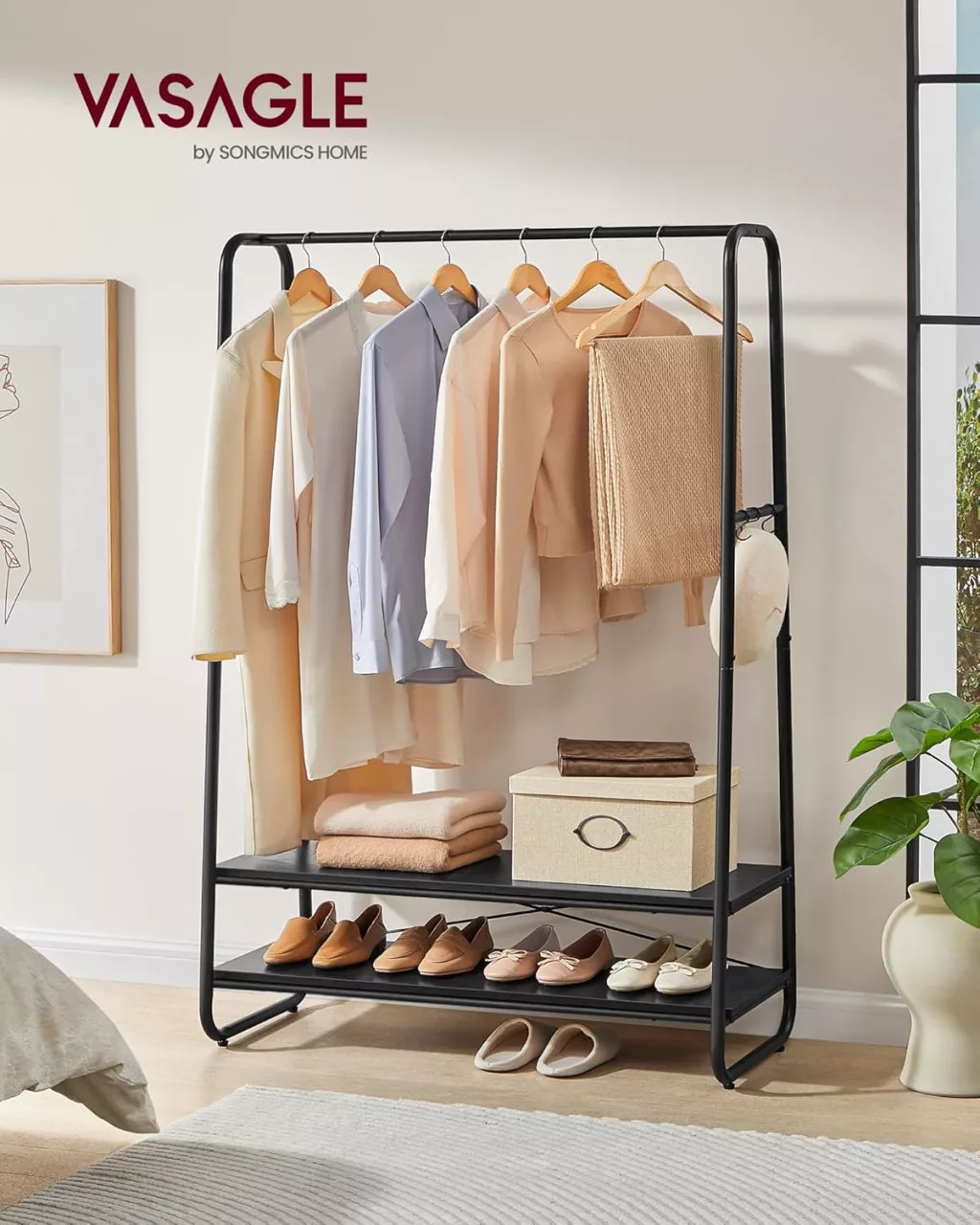 VASAGLE Ipari Ruhaállvány Fekete Acélvázzal és Polcokkal