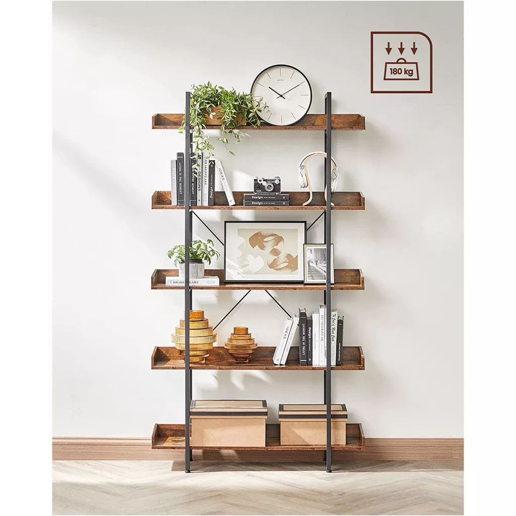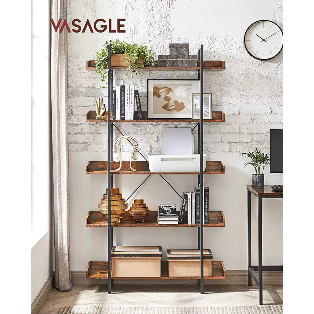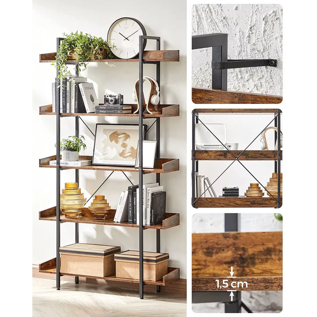 VASAGLE Ipari Stílusú 5-Szintes Könyvespolc Rusztikus Barna-Fekete