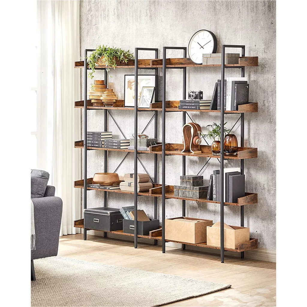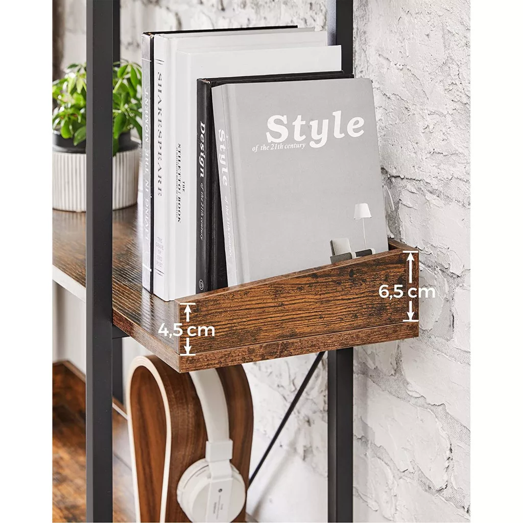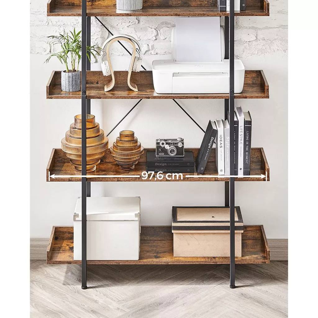 VASAGLE Ipari Stílusú 5-Szintes Könyvespolc Rusztikus Barna-Fekete