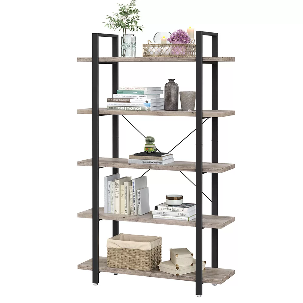 VASAGLE Ipari Stílusú 5-Szintes Könyvespolc Szürke-Barna és Fekete