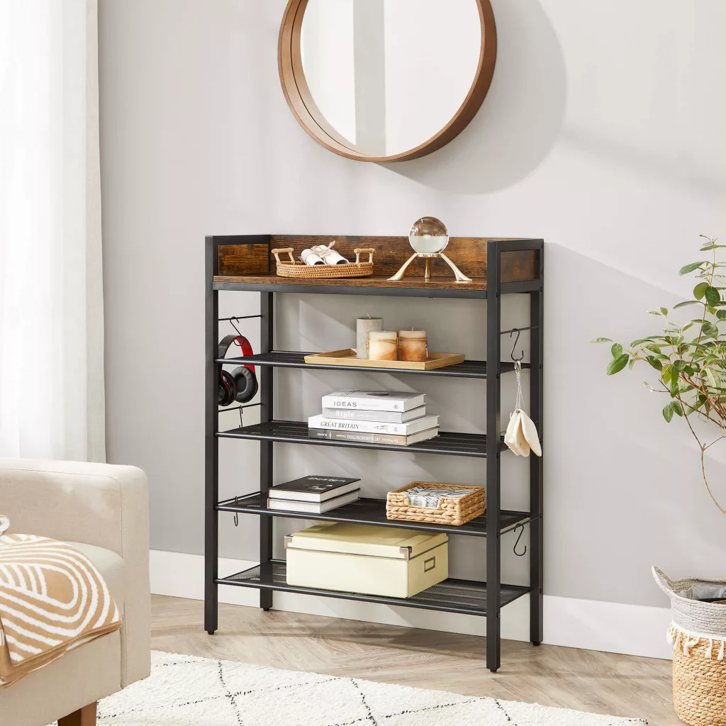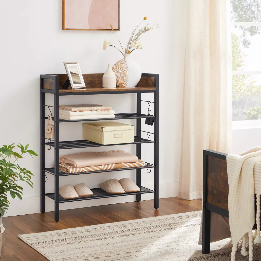 VASAGLE Ipari Stílusú Cipőtároló Állvány Emelt Peremmel Rusztikus Barna-Fekete