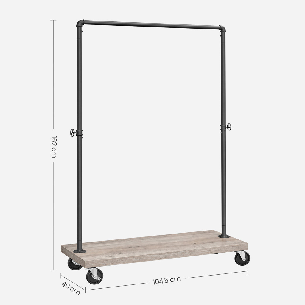 VASAGLE Ipari Stílusú Gurulós Ruhaállvány Polccal Szürke-Bézs és Fekete